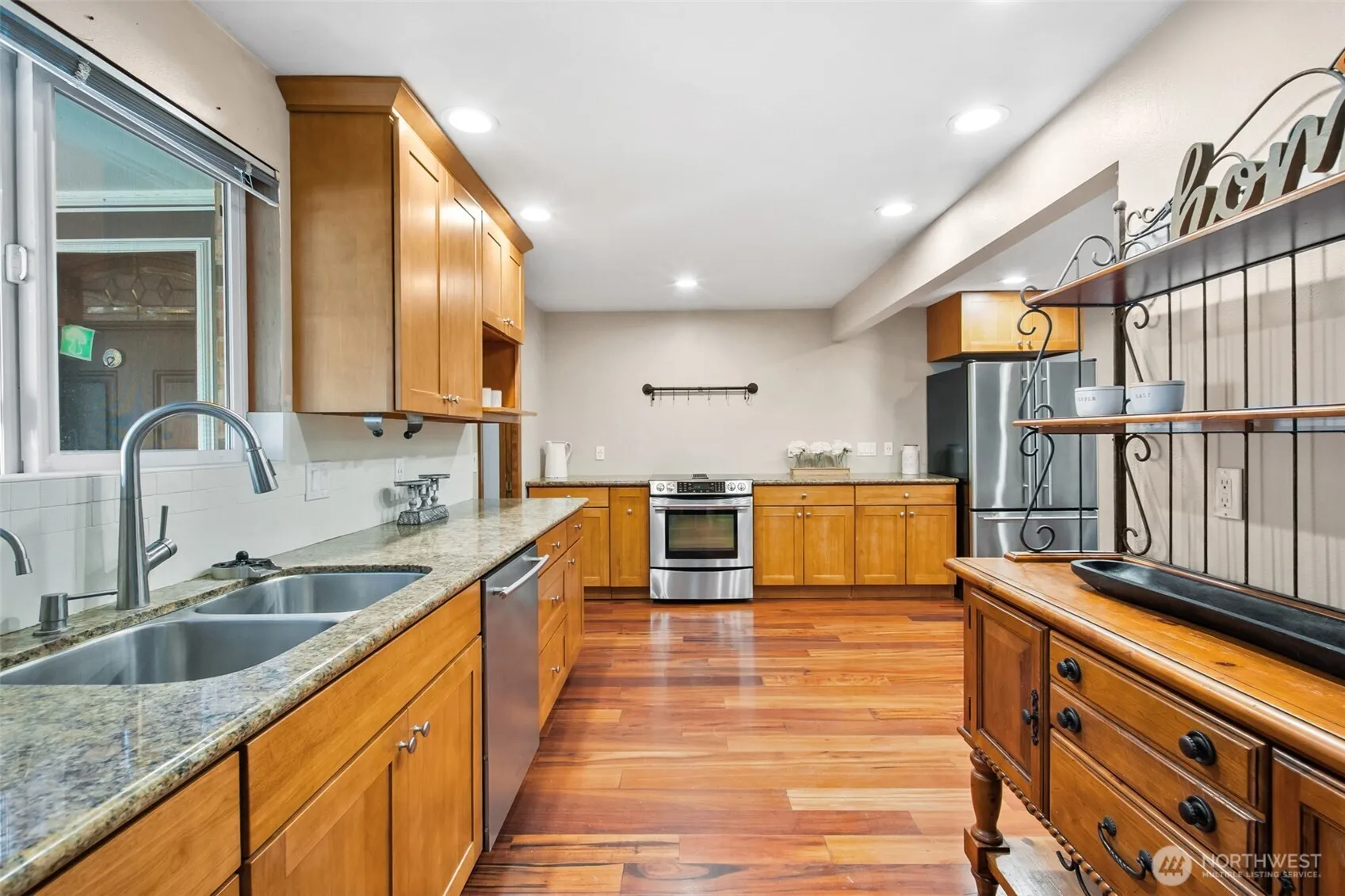 Nestled on spacious corner lot in the heart of Edgewood, this beautifully remodeled home blends warmth, style, and comfort in all the right ways. Resting on .3 acres, it offers both room to breathe and space to gather. Step inside to discover an inviting LR, 3 bdrms, 3 full ba, & two distinct living spaces designed for both connection and quiet moments. The thoughtful remodel brings modern touches while honoring timeless character, bright natural light dances across updated floors, a fresh kitchen welcomes conversations over morning coffee, & each room flows effortlessly into the next. Outside, the corner lot provides endless possibilities. From backyard barbecues under covered patio to peaceful evenings under the stars, opportunity awaits!