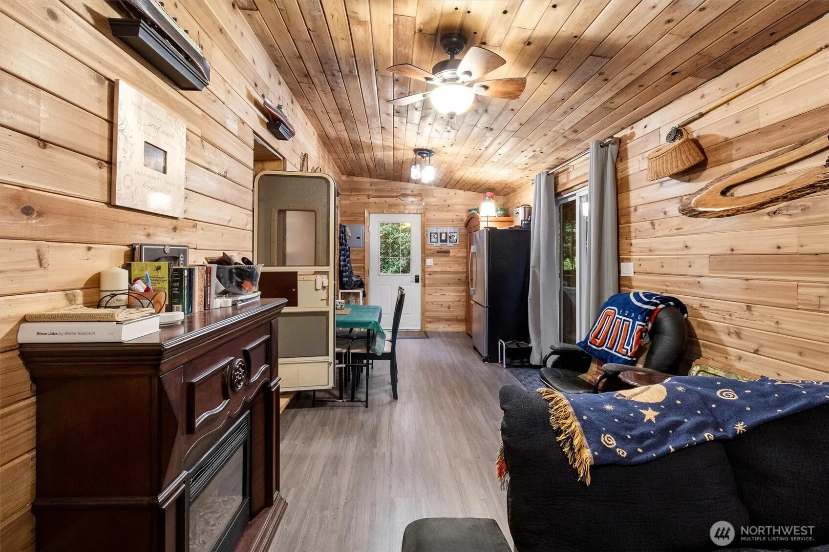 Do you love camping and entertaining? This recreational property is perfect for both! Indoors you will find two bedrooms, full bath, and a kitchen stocked with everything you need for cooking. The side addition was built in 2019 and adds 450 square feet. It has cedar lined walls and ceilings, living room, dining area, fireplace, laminate flooring, full size fridge, and pantry. Outdoors is a cedar lined bunkhouse to sleep two more. There’s also a spacious gazebo with firepit, tool shed with workspace, and even a fun golf cart! This 120 day stay per year property also includes an indoor pool, clubhouse, playground, park and trails. Don’t let the fall weather stop you. The property can be enjoyed year around!
