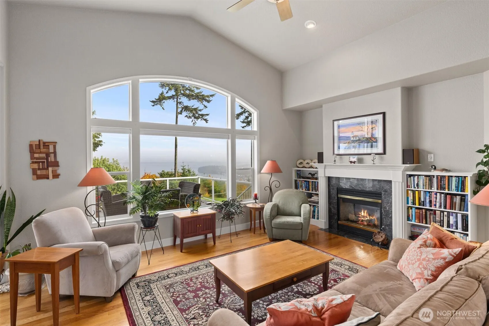 This luxury Camano Island VIEW property sits 500’ above sea level on a premier lot in a special, north-end neighborhood. Main-floor living w/ unobstructed 180-degree views of the Sound, Mt. Baker and the Cascades! You’ll love the 2-sided fireplace dividing the vaulted living room and the cozy family room. Soak up the views from nearly every room in this spacious home. Enjoy privacy in your 5-piece primary bedroom, separate from other bedrooms. Lower-level rec room, bathroom, and dream workshop offer flex space for everyone. Beautifully landscaped LARGE yard. Top-tier amenities include solar panels, central vacuum, a heat pump, generator wiring, and an over-height 3rd garage bay perfect for an RV or car lift. Minutes to beaches and I5.