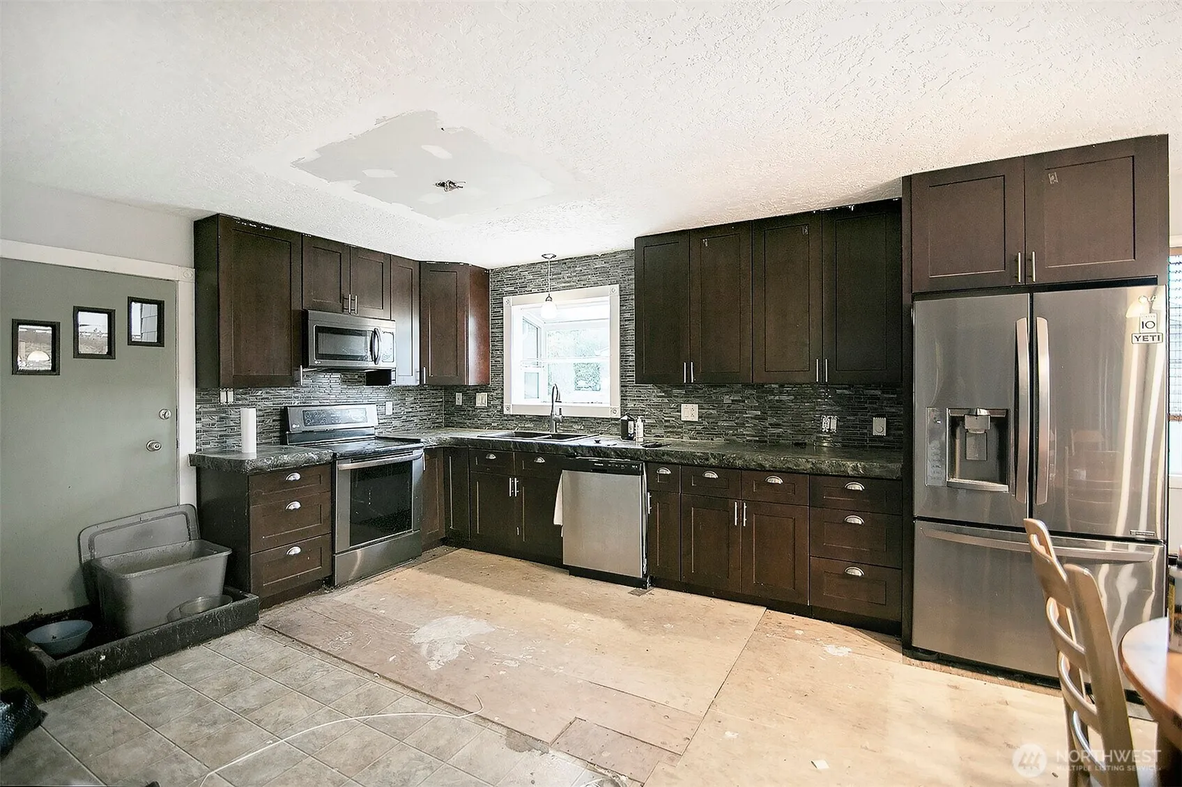 ATTENTION INVESTOR’S — Fixer — Kelso — 5 Bedroom / 2 Bathroom — 2 Level — 2644 Sqft — LARGE Lot — Fully Fenced — Living Room — Open Kitchen w/ Stainless Appliances — Pantry — Dining Area — Primary on Main Level — Family Room — Laundry Room — Vinyl Windows — Skylights — Ceiling Fans — NEW ROOF — Double Attached Carport — Covered Deck — Yard — Garden Space — Close to Schools — Easy Access to I-5 — 40 Minutes to Vancouver / Portland Areas