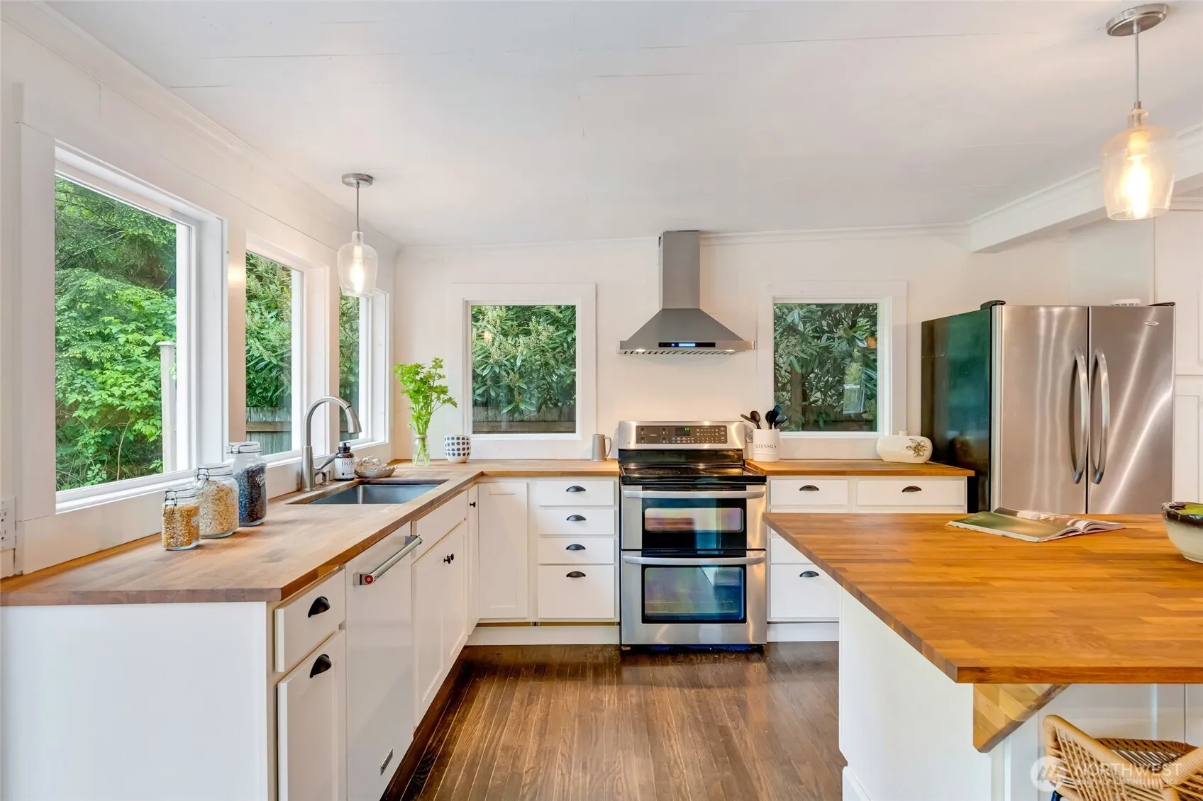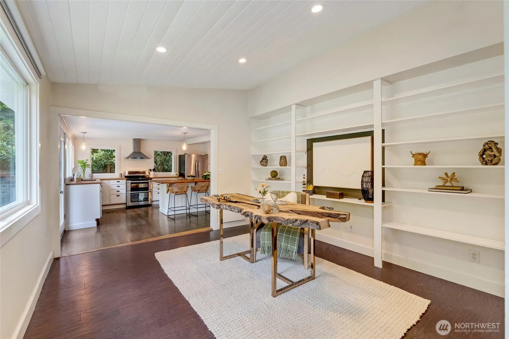 Fully remodeled rambler with 66’ of river frontage! Enjoy a stunning open kitchen with 10’ island, stainless appliances, & river views leading to a spacious re-stained deck, lawn, & custom fire pit. Features include new exterior paint, oak floors, remodeled baths, built-ins, & a large private room with barn doors that can be used as an additional bedroom, office, den, etc! Bonus: separate tiny house—perfect for guests, WFH, or rental. Just 10 mins to I-90, close to Snoqualmie & Tiger Mtn trails. Issaquah School District! FEMA-exempt from high-risk flood zone. Serene living with modern style!