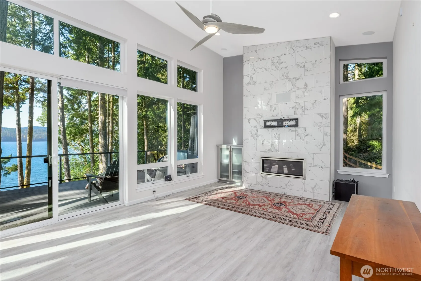 Absolutely stunning contemporary style home right on Sequim Bay! Metal roof, quartz counters, LVP flooring, ductless heat pumps, stainless steel appliances, etc. Modern kitchen is gorgeous w/huge Quartz Island, gorgeous custom lighting, wine fridge, and Bosch 5-burner propane stove. Vaulted ceilings with floor-to-ceiling views, propane f/p and doors out to a large Trex deck to sit and enjoy the scene. Primary BR off to one end w/slider out to the deck, plus a gorgeous bathroom suite. Artist studio or den/office also w/a door out to the deck facing Sequim Bay. BR2 is on the opposite side of the house, next to the 2nd full bath. Fenced-in area along the north side for pets. A really special home on an extraordinary piece of waterfront land.