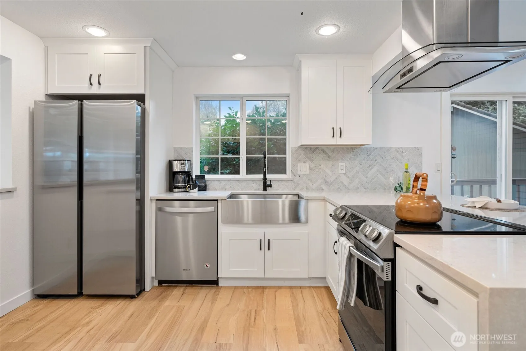Beautifully Remodeled Home with Dual Primary Suites! This stunning, fully remodeled home offers two spacious primary suites—each with its own private bathroom—perfect for multi-generational living or guests. The open-concept layout features two inviting living areas filled with natural light, luxury vinyl plank flooring throughout, and elegant, high-end finishes. The gourmet kitchen showcases stainless steel appliances and sleek modern design. Situated on a large, flat lot with alley access, this property provides excellent potential to build a future income-producing DADU. A truly move-in-ready home that blends style, function, and opportunity!