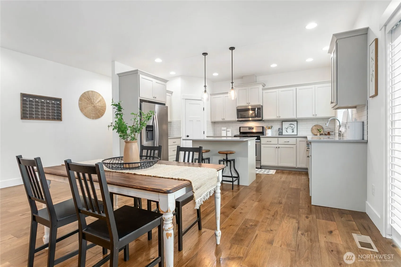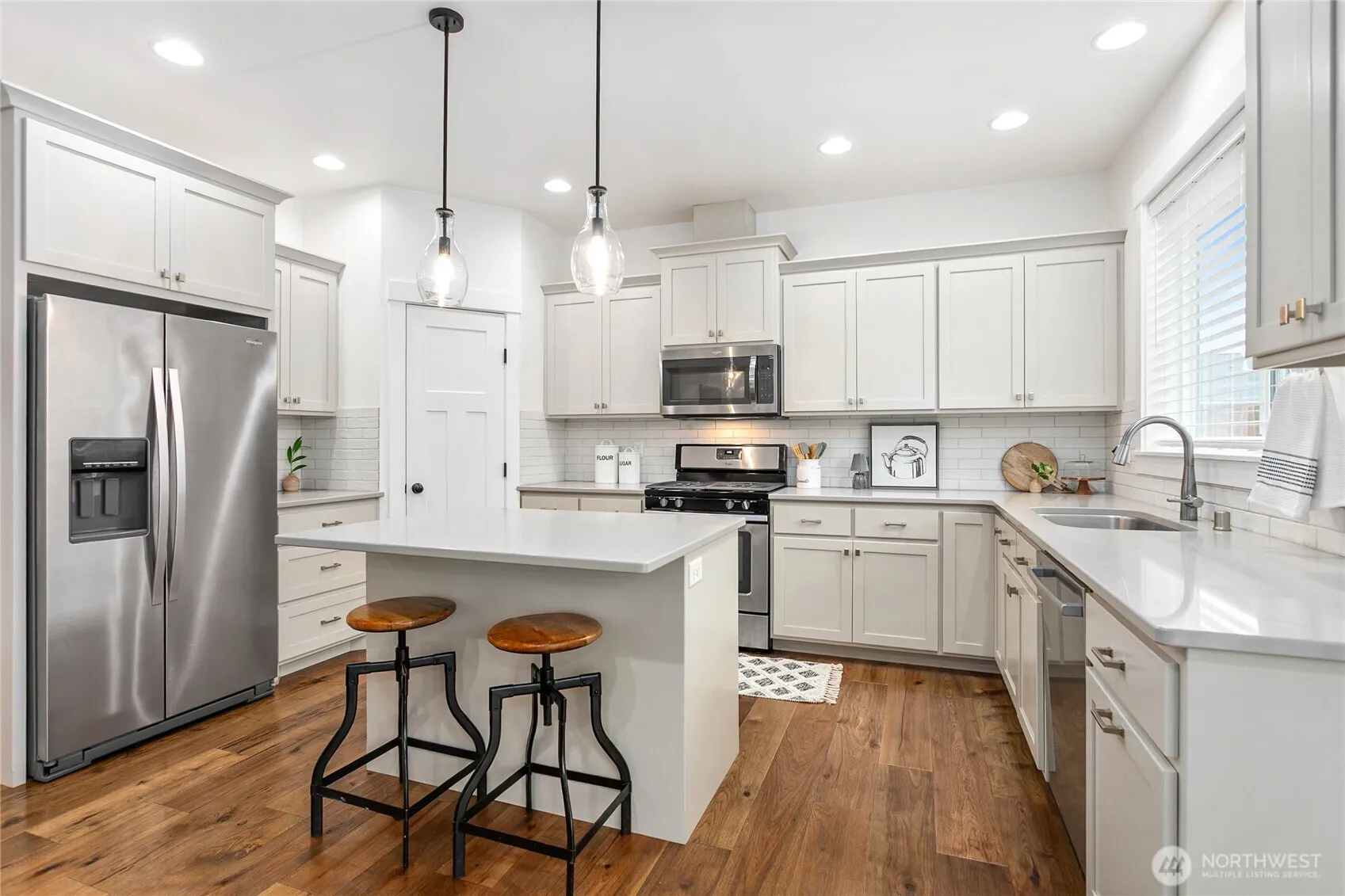 Well maintained, one owner home originally built by Pacific Edge Builders. 2,108 sf open concept rambler w/ 4 bed, 2 bath plus bonus room. Originally built w/ well appointed custom finishes incl. quartz countertops, engineered hardwood, & ceramic tile in bathrooms. The spacious kitchen boasts custom cabinetry, tile backsplash, and stainless appliances. The primary suite offers a walk-in closet, soaking tub, and separate shower. Addl features include vaulted ceilings, gas fireplace, forced air A/C with additional bonus room mini split for extra temperature zone control. Stamped concrete patio, & concrete perimeter apron for ease of ext. maintenance. Fully finished utility shed ideal for office, playhouse, or storage. Vacant & move in ready!