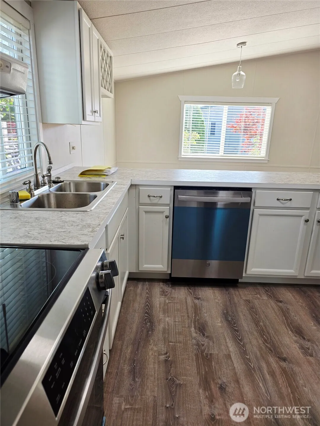 Discover the perfect mobile home haven in the peaceful 55+ community of Mountain View estates. Completely remolded and move-in-ready, this home boasts vaulted ceilings, elegant quartz countertop’s in both the kitchen and bathrooms, and brand-new stainless-steel appliances. Nestled on a spacious corner lot, it offers two-car covered parking, a large shed with electricity, and the breathtaking views of Mt. Rainier. Enjoy, comfort, and scenic beauty – all in one exceptional home.