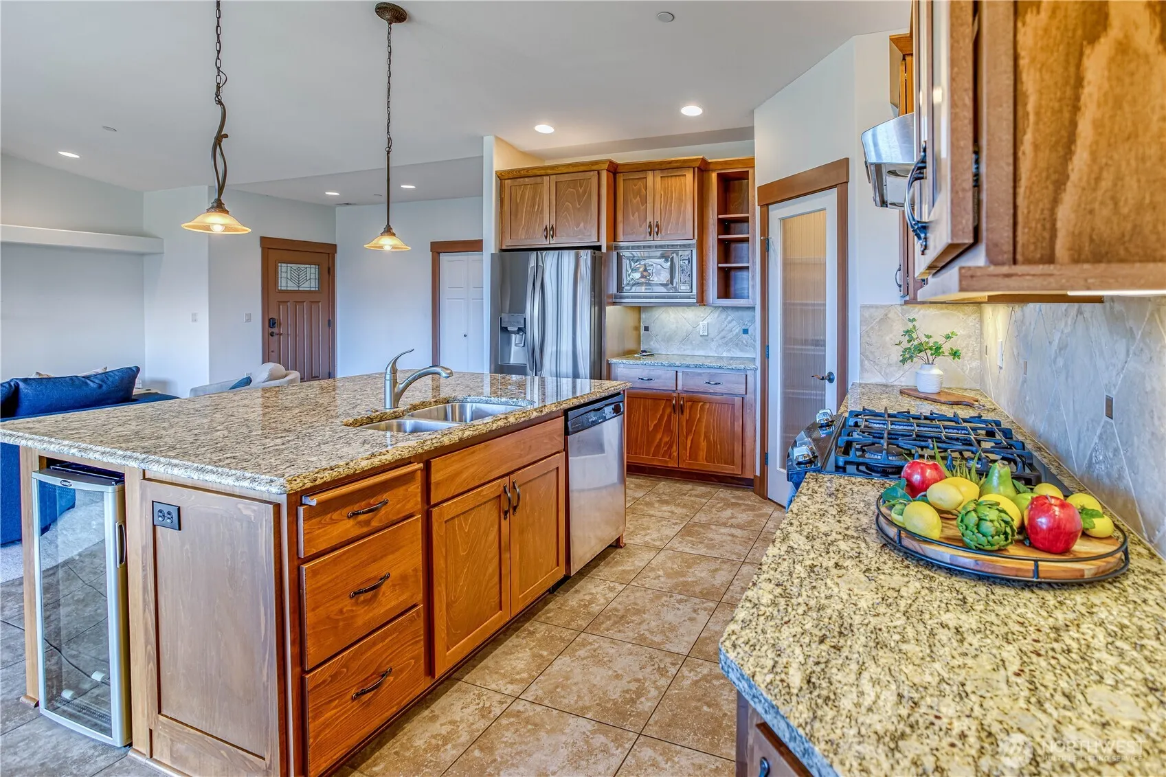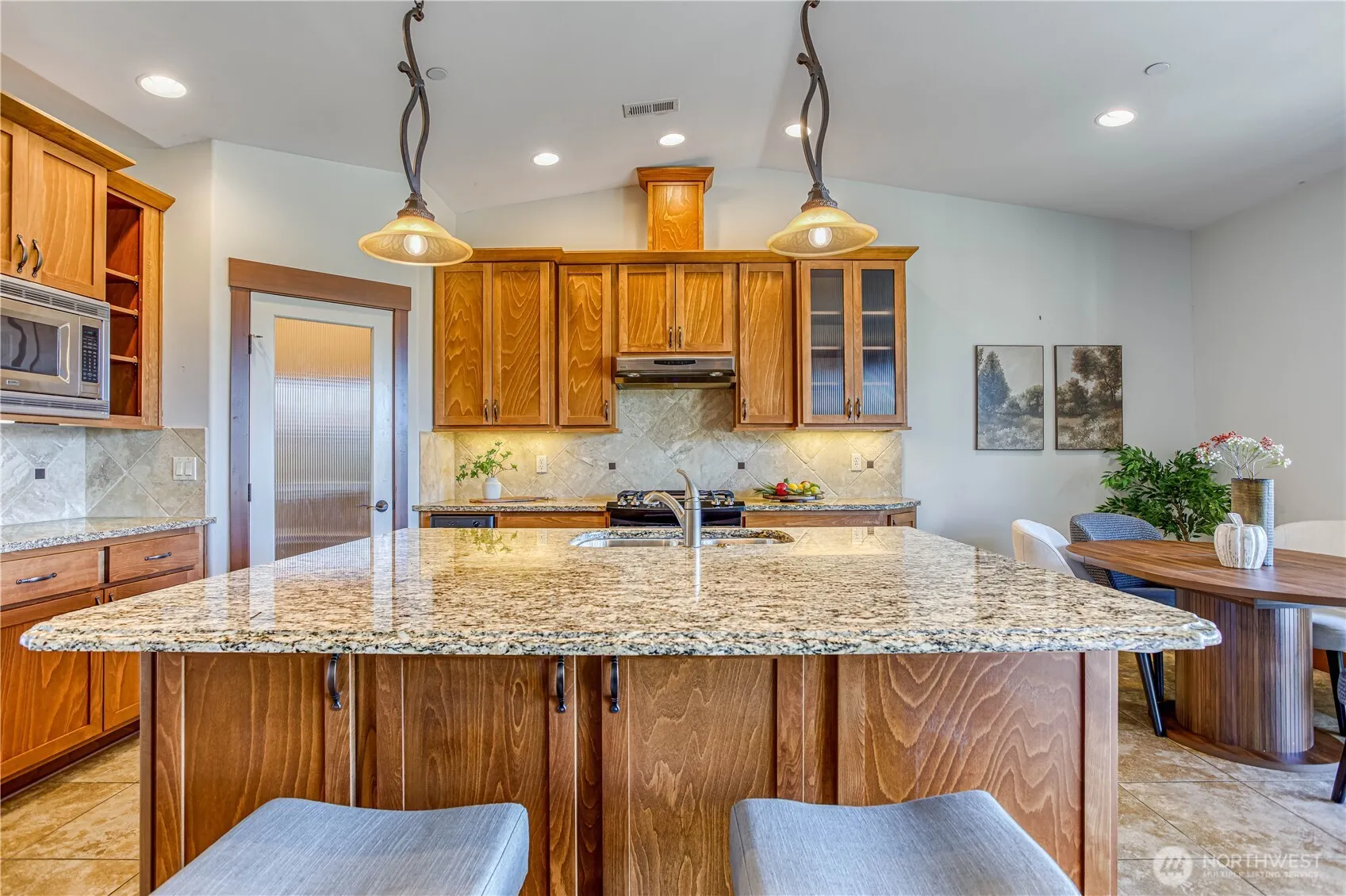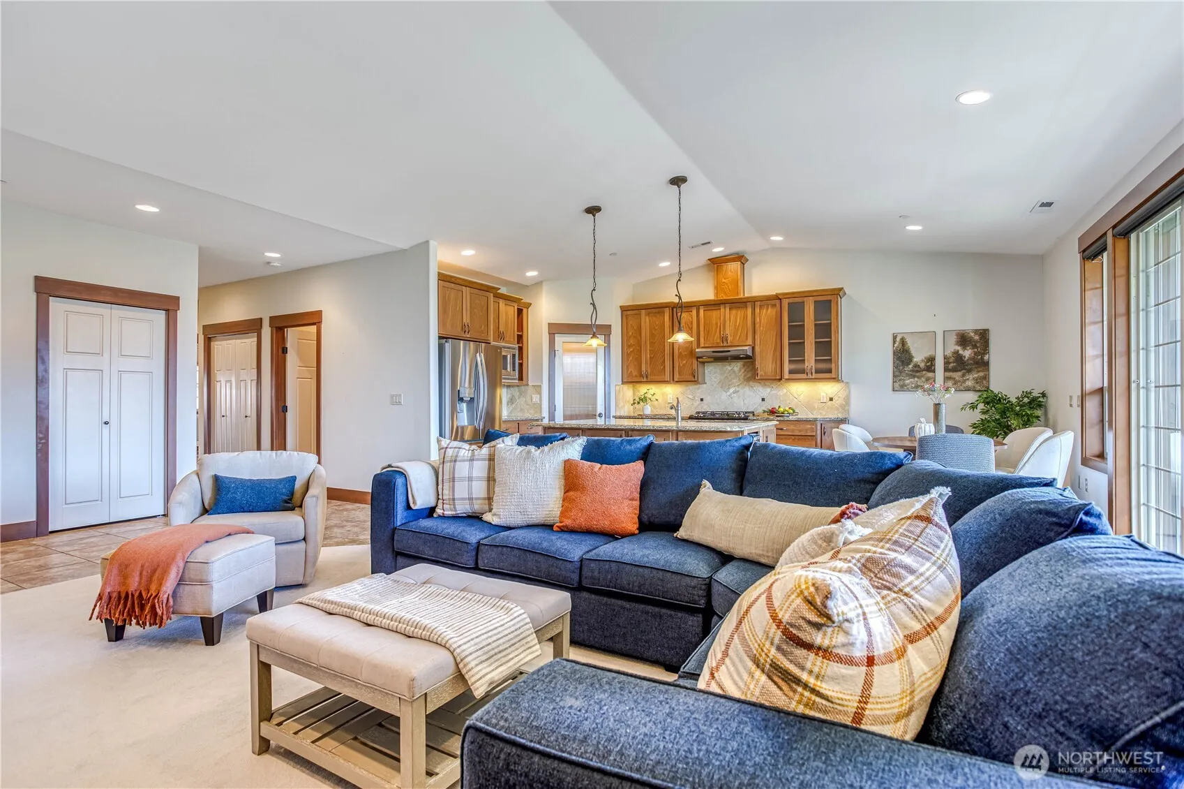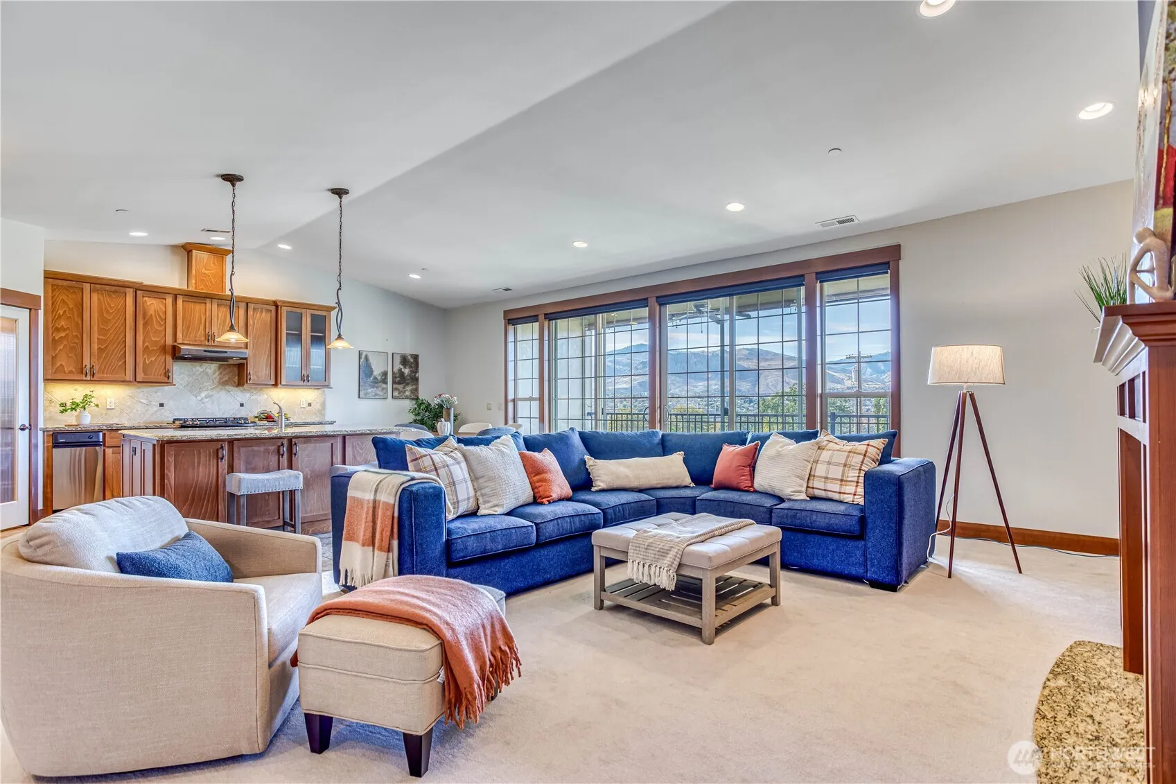 Beautiful condo with a secure gated entrance and stunning mountain and river views. Like new, lightly lived in, and well maintained, this unit features vaulted ceilings, a large kitchen island, granite countertops, a gas stove, wine fridge, and walk-in pantry. Enjoy a spacious covered deck with timed shades on the deck windows and a generously sized laundry room. Includes a garage plus a dedicated parking space. HOA covers water, sewer, garbage, gas, and area maintenance for easy living. Pets allowed—see CCRs for details. Conveniently located close to shopping, dining, and recreation — close to everything you need. Please park on the street and walk in next to the gate for showings. Unit is located in the first building on the left.