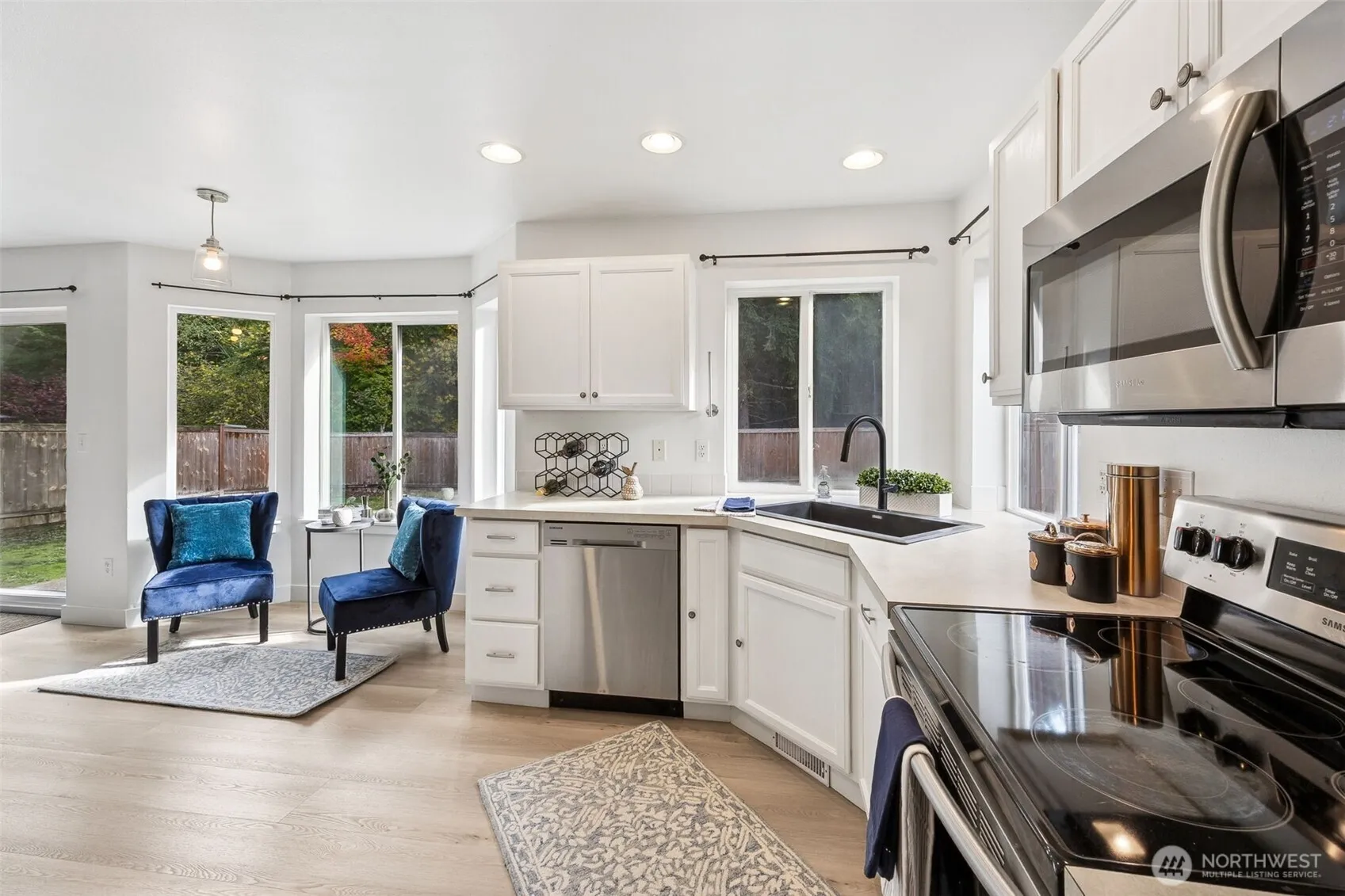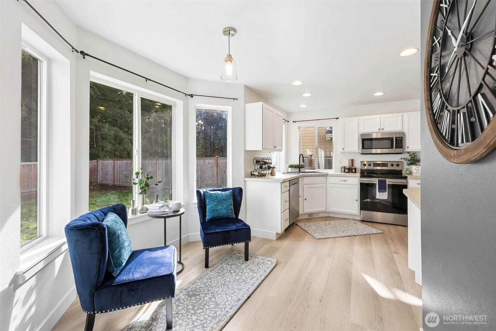 Discover life in The Buttes — a sought-after gated community in Orting! Perfectly situated on a quiet cul-de-sac with a lush greenbelt backdrop and RV parking! Inside, comfort meets functionality with an open-concept main level featuring a bright kitchen with ample cabinetry, a sunlit dining nook, a spacious formal dining area, and a cozy living room with a gas fireplace and access to the fully fenced backyard. Upstairs offers a versatile loft, three guest bedrooms, and a stunning primary suite with a 5-piece bath and walk-in closet. Updates include new flooring, millwork, doors, light fixtures, A/C, furnace, roof, and wired for a whole-house generator. Modern style, space, and community — it’s all here!