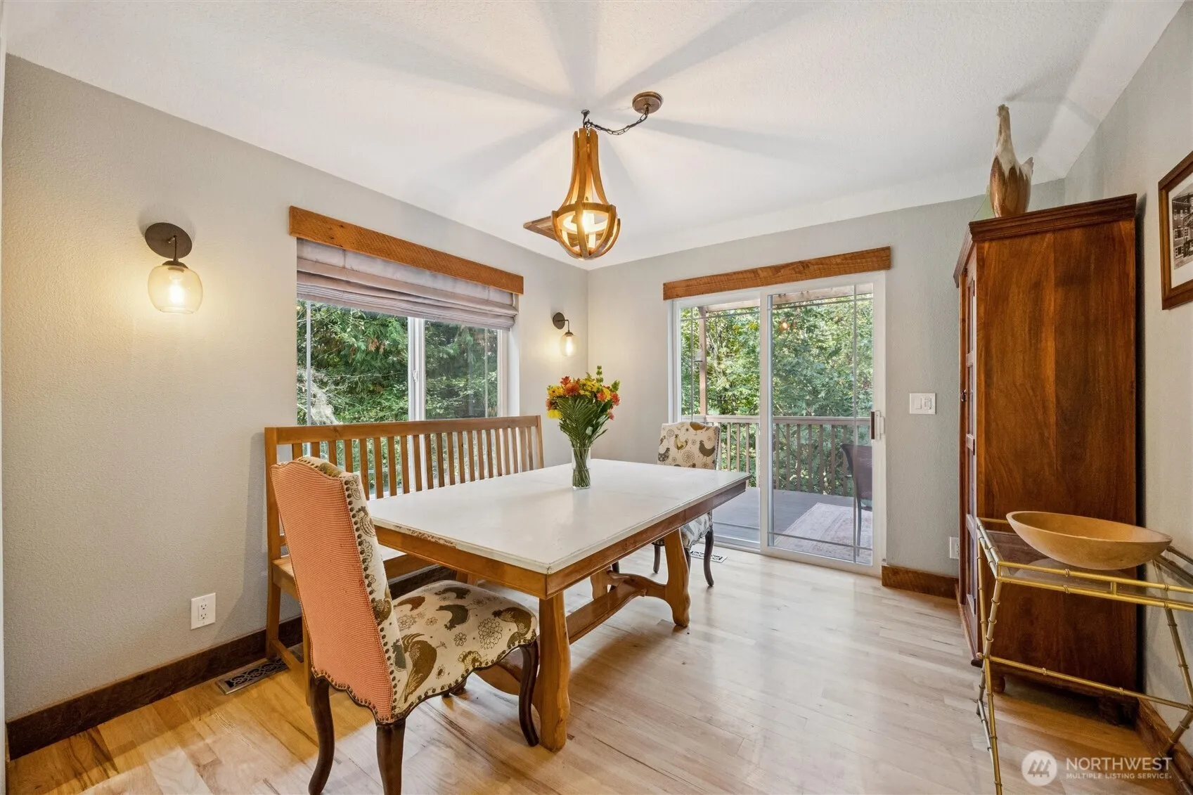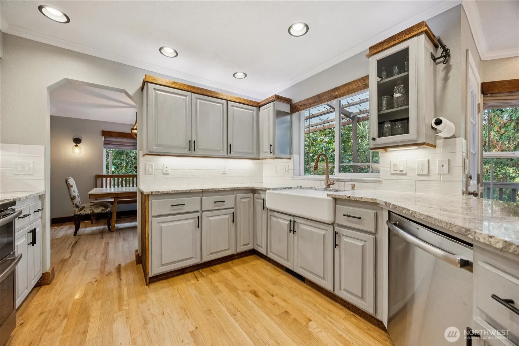 Freshly updated and full of country charm! This 4 bed, 3.5 bath, 2,200 SF home sits on 2.5+ wooded acres. Wood floors, reclaimed trim, and granite kitchen with SS appliances, farmhouse sink, breakfast nook and deck access. Family room with wood stove, dining, living and laundry/half bath. Upstairs: 3 beds including primary suite with remodeled bath, walk-in closet, private deck and spiral stairs to hot tub. Lower level guest suite with kitchenette and bath. New exterior paint, full re-pipe, newer heat pump, water heater and softener. Oversized garage with workbench, garden, chicken coop, sheds, paved drive, and trail to creek—peaceful country living with modern comforts! Schedule your private showing today to fully appreciate!