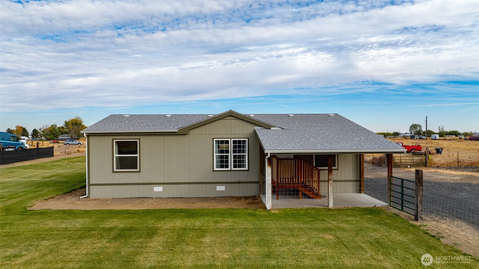 Welcome Home! This beautifully, fully renovated 1998 Fleetwood manufactured home on quiet country acreage just outside Moses Lake! Nearly 1,200 sq ft with 3 large bedrooms and 2 bathrooms. Features luxury vinyl plank flooring, quartz countertops, new kitchen and bath cabinets, vaulted ceilings, new trim, doors, and interior paint. New roof with 3 skylights adds natural light. Primary suite with walk-in closet and updated bath. Enjoy a large covered patio, fenced yard with timed UGS, small workshop, private well and septic, ample parking, and level, mostly fenced land! This one won’t last! Truly a must see. Contact Your Favorite real estate broker TODAY for a private showing!