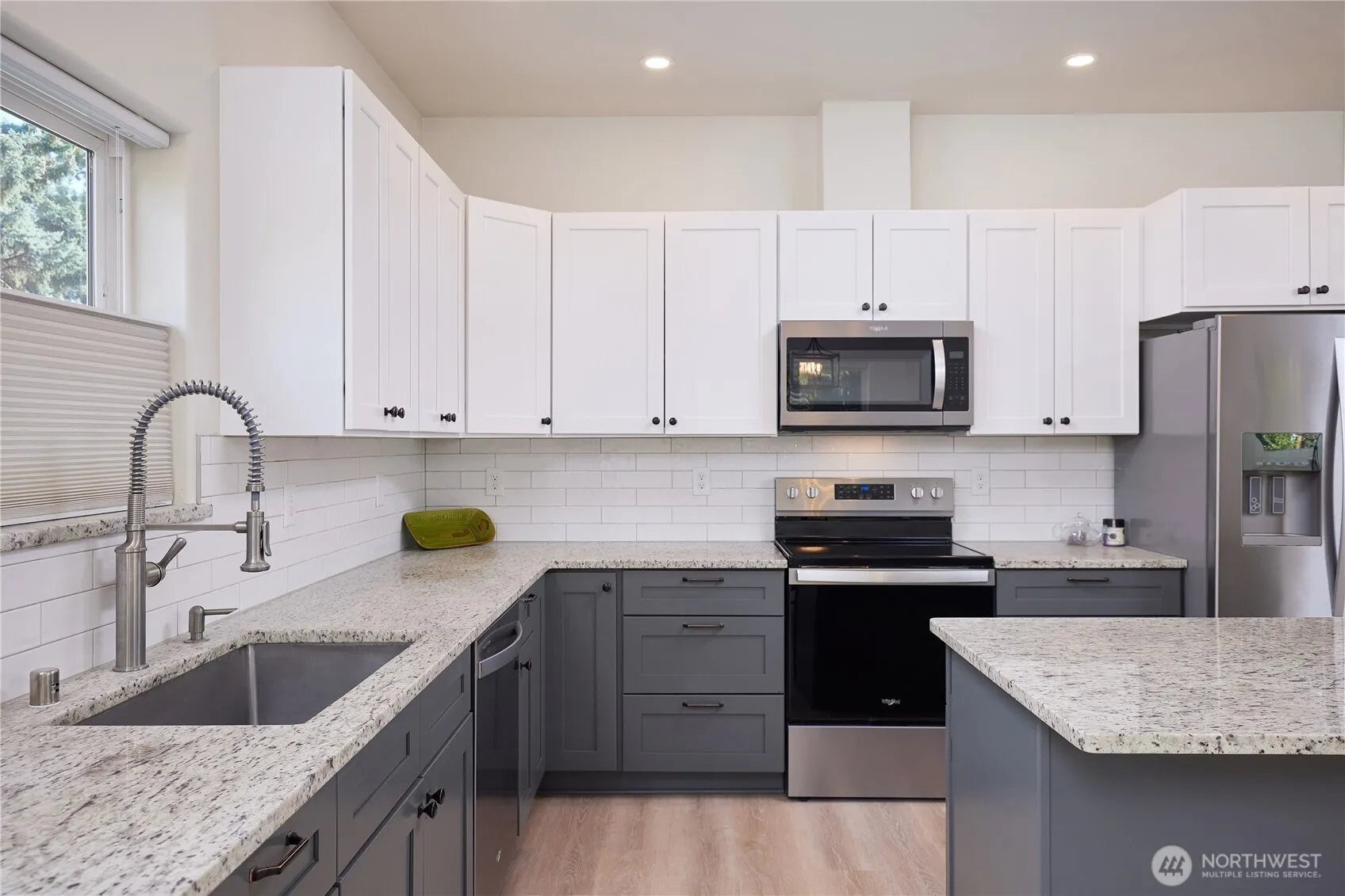 Perfectly situated near the park and Wa-Hi School, this newly built one level residence offers both convenience and tranquility. A warm gas fireplace anchors the inviting living space, complemented by thoughtful design and effortless flow throughout. The two-car garage provides ample storage and everyday ease. Step outside to a serene backyard that backs to a quiet road, an ideal setting for morning coffee, evening gatherings, or simply enjoying the calm of your private retreat.