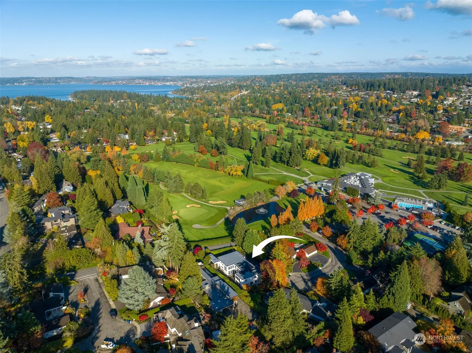 Step into this stunning modern home, ideally located across from Overlake Golf & Country Club in Medina. This exceptional architectural gem offers more than 9,200 SF and showcases 5 en-suite bedrooms, 8 baths, dramatic ceilings, triple-pane glass in sleek aluminum windows and doors, a solar energy system, advanced smart home features, 10-foot wide gallery-style hallways, and expansive windows framing views from the golf course to Bellevue city skyline. Enjoy a private movie theater, gym, office, outdoor kitchen with full BBQ, beautiful garden with a waterfall, and a spectacular Sky Lounge with panoramic golf course vistas. Every space is thoughtfully designed with refined finishes. A rare blend of top-tier location and timeless elegance.