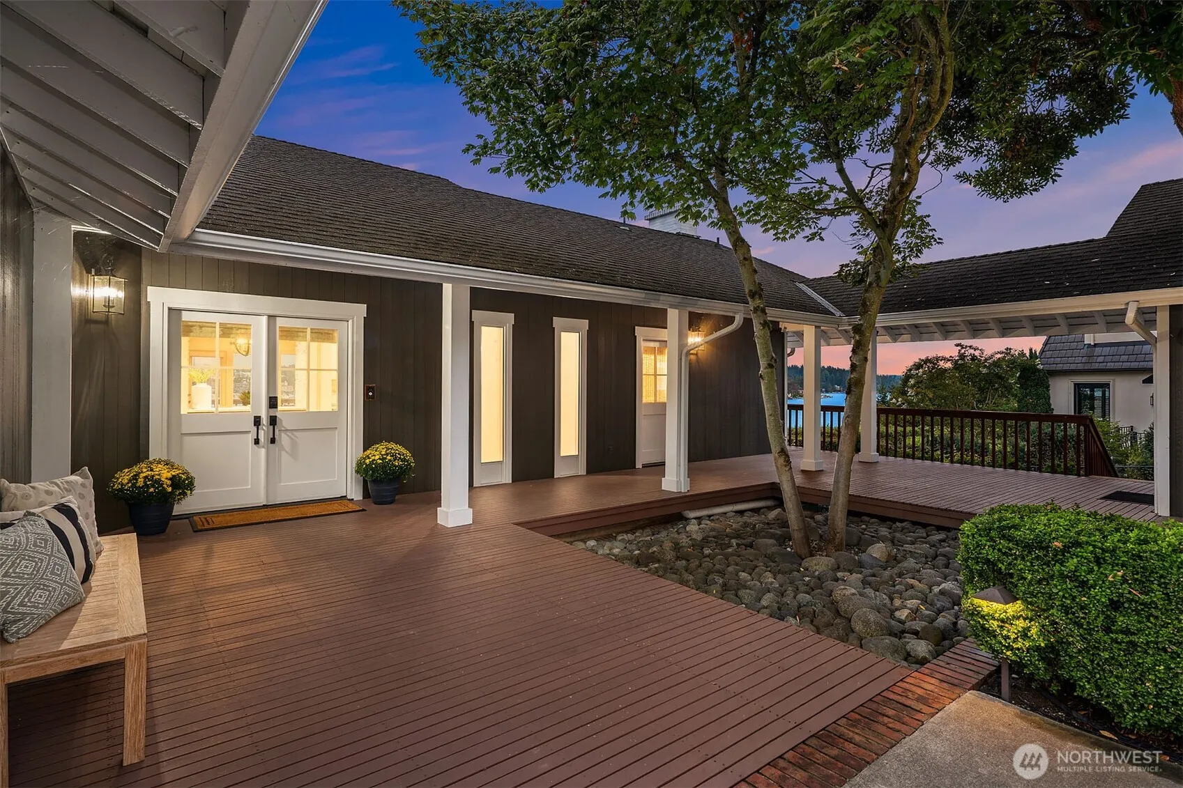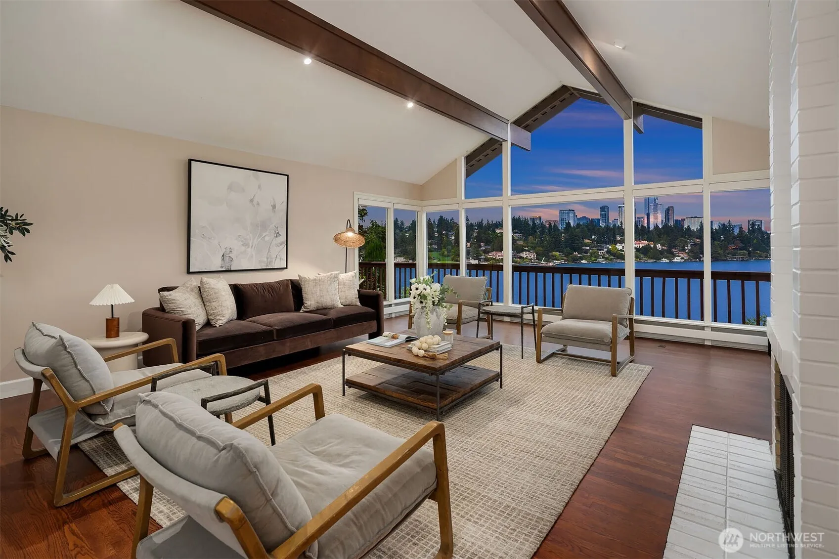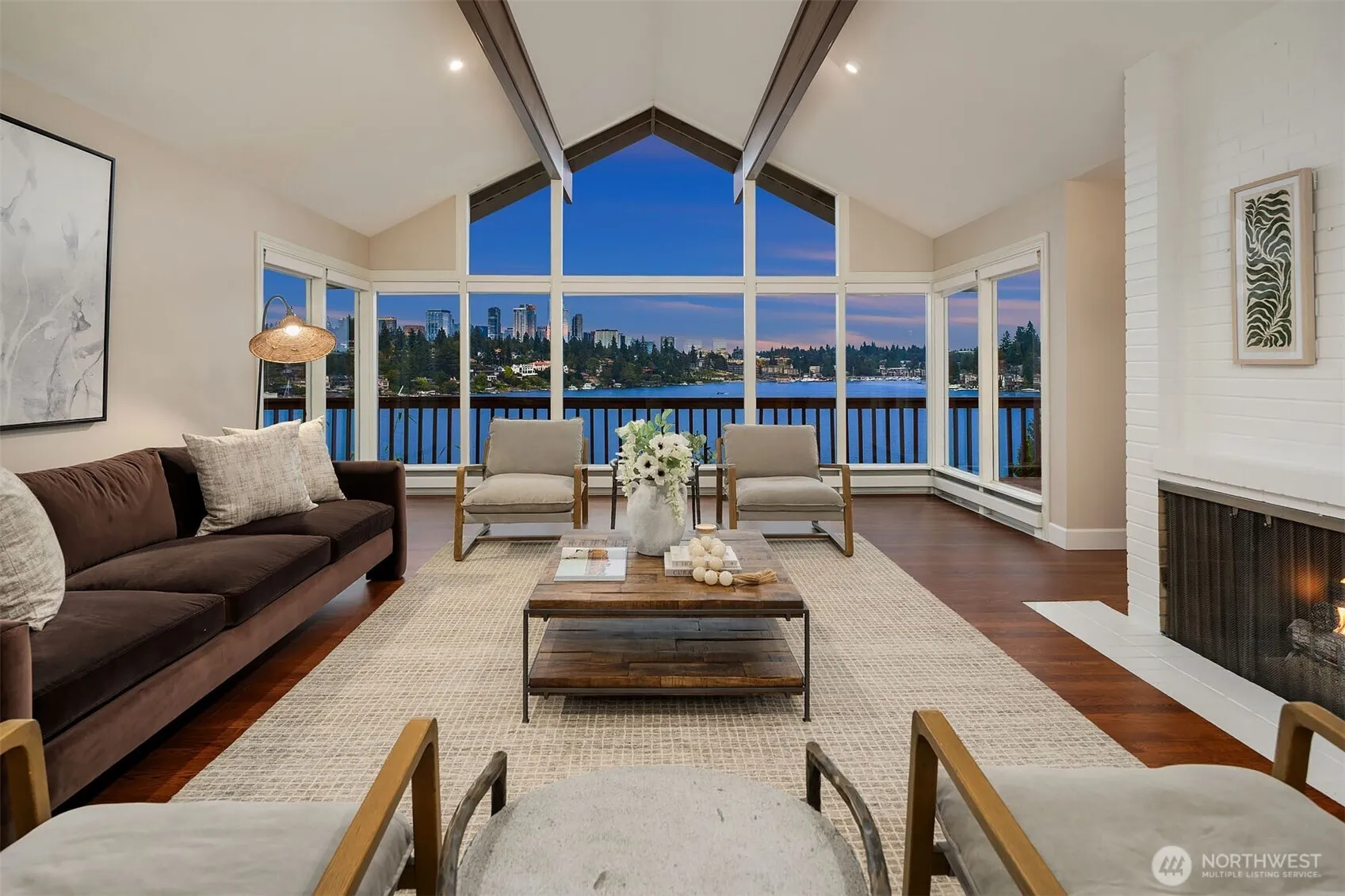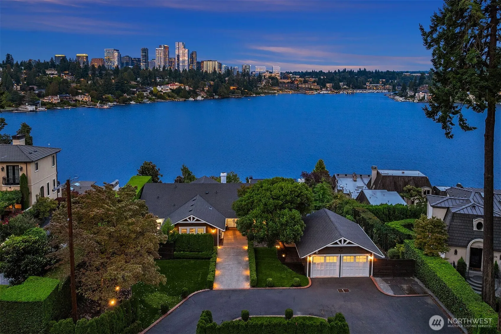 Enjoy a rare opportunity to own a recently remodeled mid-century modern sited just above Medina’s coveted Gold Coast. Situated privately from the street with an elegant circular drive, a level entry leads to spacious open living areas. Nearly every room captures breathtaking views of Meydenbauer Bay, LK Washington, Mt Rainier & the Bellevue skyline. Remodeled kitchen with adjacent view family room. Two primary suites provide flexibility: one with dramatic views, the other with office & patio. The expansive wraparound terrace is perfect for outdoor living & entertaining with room for multiple seating vignettes. View lower level with family room & 2 bedrooms. Move in now & enjoy or plan your future dream home on the nearly half acre view lot.