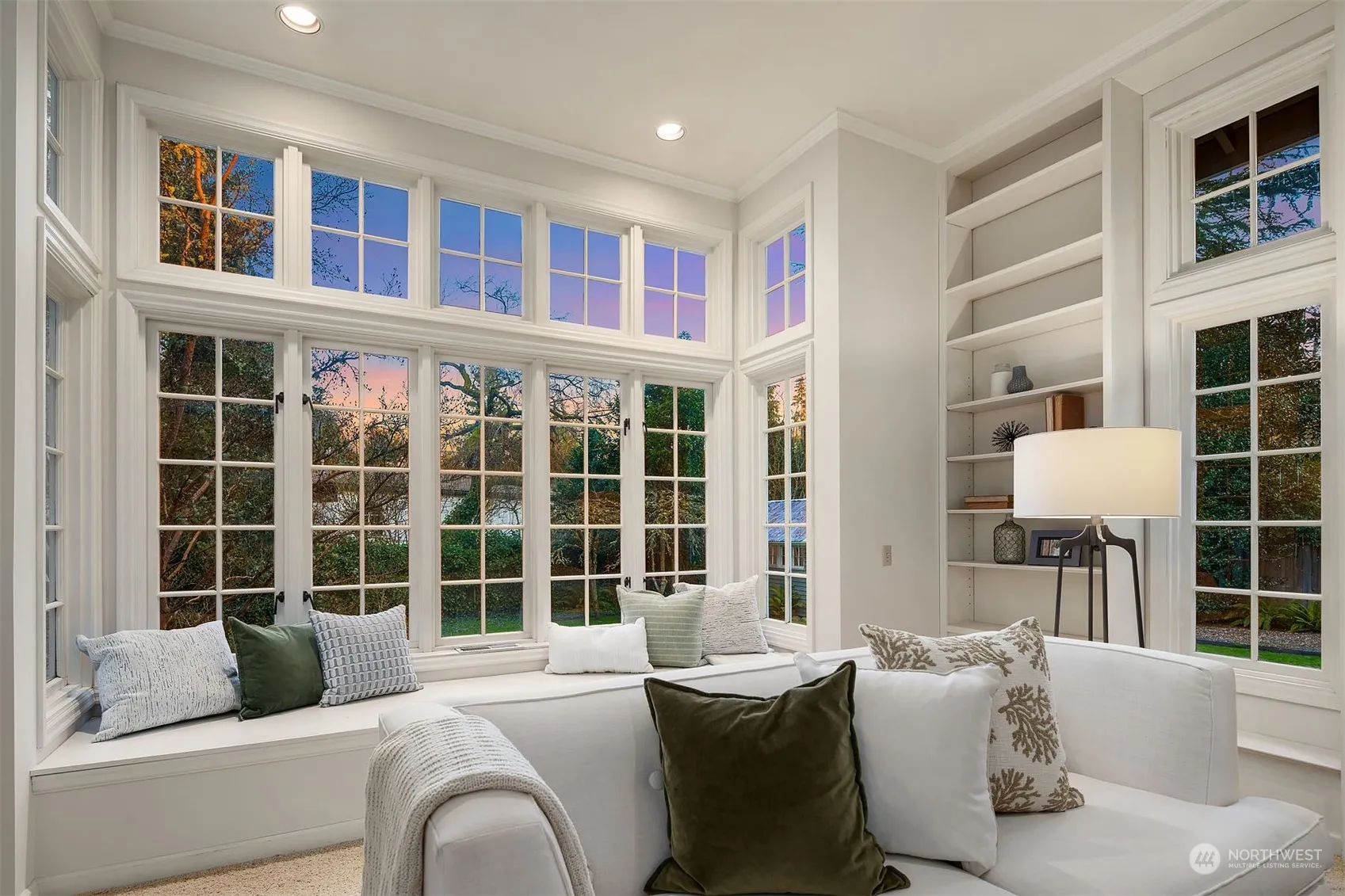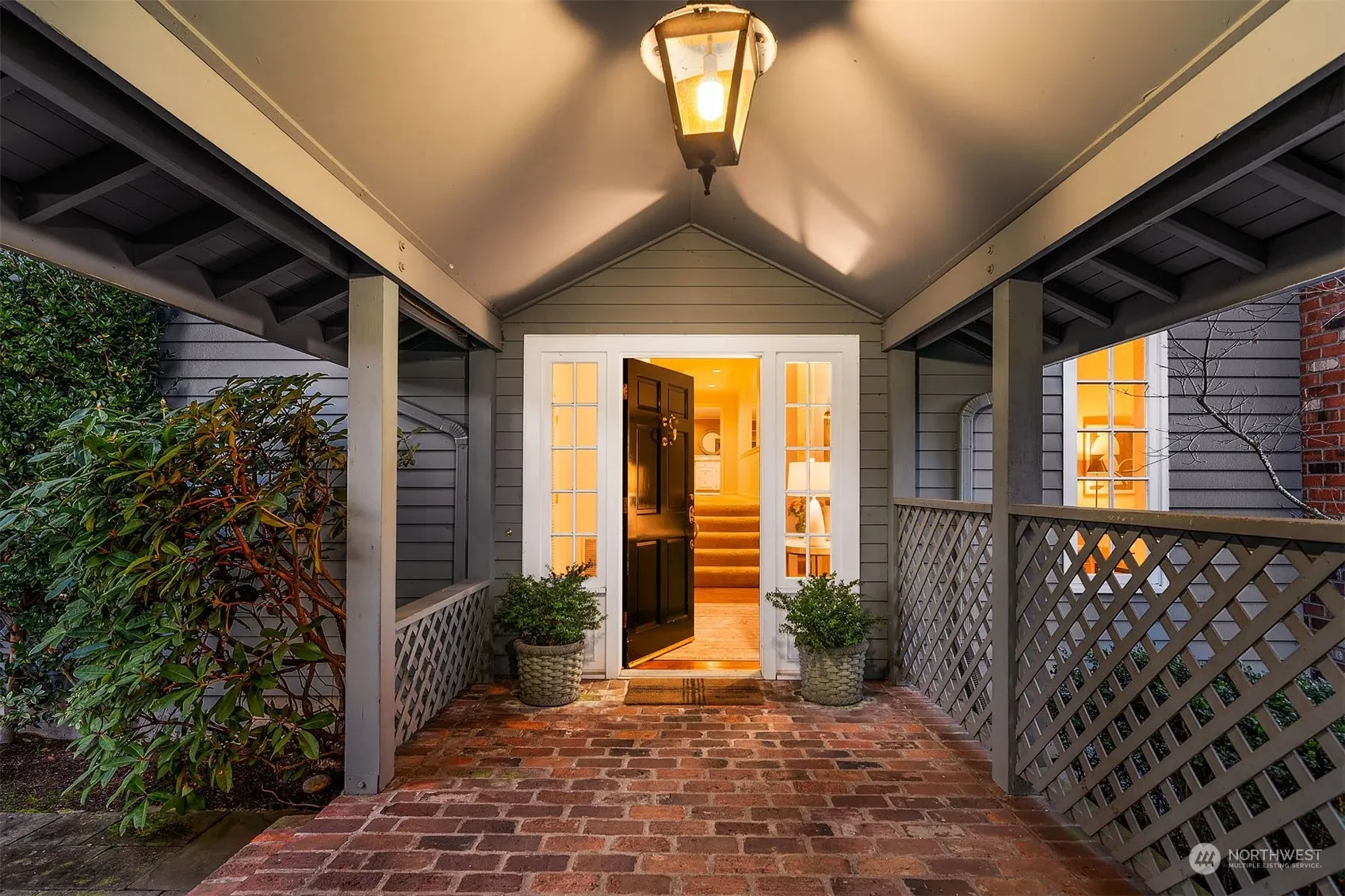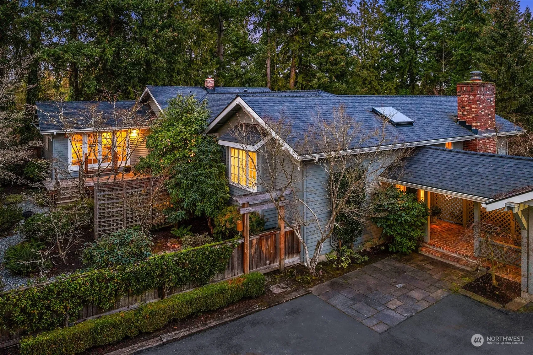 Beautiful traditional offers an exceptional one-level floorplan that combines timeless elegance with modern comfort. Stunning living room with soaring 12′ ceilings, impressive, floor-to-ceiling used-brick fireplace with herringbone detailing flanked by built in bookshelves. A wall of windows floods the room with natural light. Remodeled kitchen boasts slab granite counters, a stylish tile backsplash & chic white cabinetry. Stainless appliances: GE refrigerator & a Wolf 4-burner gas range. Spacious primary is located in its own private wing with French doors to a private deck. Spacious en-suite bath; flawless tile, a deep jetted tub, dual sinks & a glass tile shower. Private level lot with mature landscaping green house & garden shed.