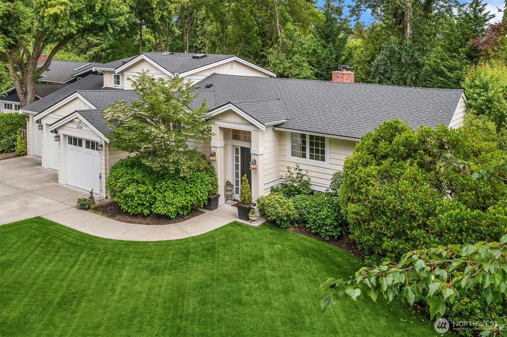 Nestled in one of the Eastside’s most sought-after neighborhoods, this beautifully remodeled 3,566 sq ft home blends elegance & comfort. W/ an open floor plan & “Down to the studs” remodel in 2011. This home features vaulted ceilings, rich hardwoods, chef’s kitchen w/ Lux soapstone counters & SS Thermador appliance package. Spacious primary suite incl. a spa-style bath w/ generous walk-in closet. Spacious living room w/ custom cabinetry, home office, and updated baths were added in 2022. Enjoy central AC, dual furnaces (one new in 2023), and two gas water heaters. Wired for sound throughout. Outdoor upgrades incl. a 2015 deck, paver patio w/ firepit, lush landscaping. Close to Overlake Golf Club, Medina Beach, top schools, and bus routes.