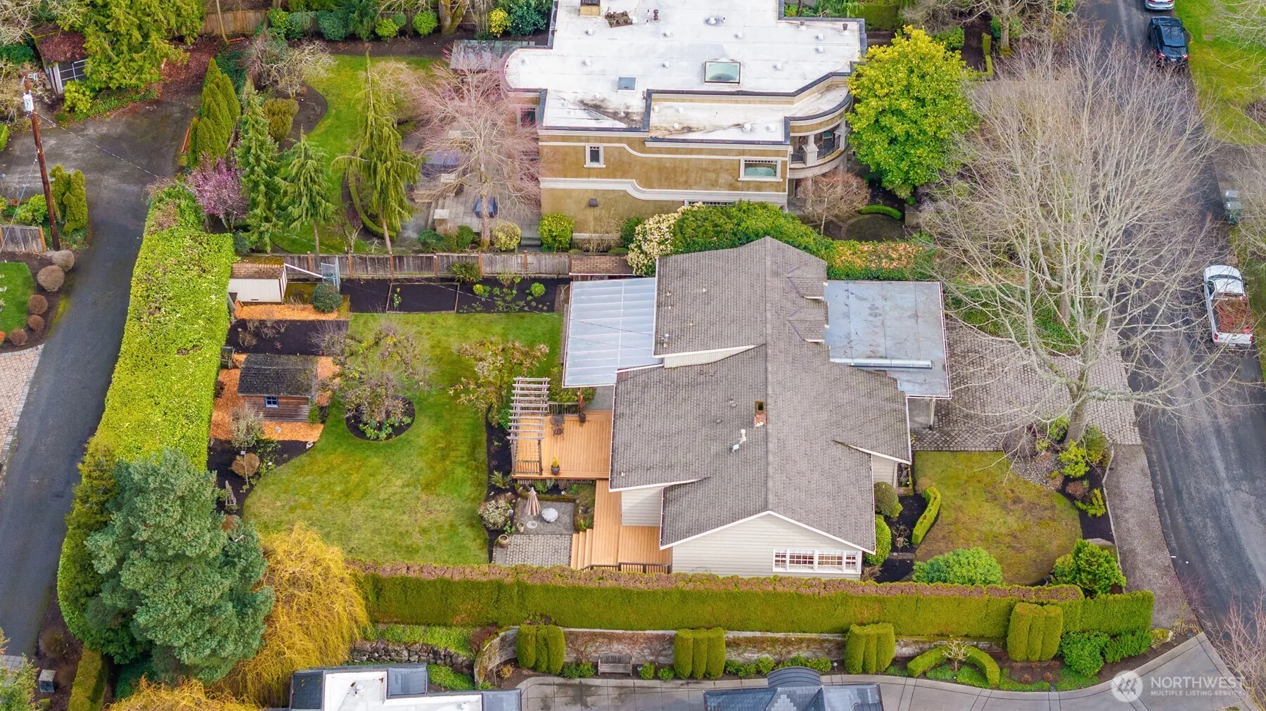 This undeniably charming historic Craftsman is a Medina Heights treasure. Nestled on a sun-drenched, flat, postage-stamp lot, it boasts a rare west/southwest-facing position on a prized, picturesque street. Enjoy broad views of Lake Washington, Mercer Island/I-90 corridor, Seattle skyline, and the Olympics! Build your dream home or cherish the vintage 1.5-story residence that captivates the moment you step inside. Spacious living areas feature a circular floor plan, oak floors, wool carpeting, and light-filled sunrooms. 2nd primary suite on the main level with ensuite, a powder room, and two cozy upstairs bedrooms. Multi-paned windows frame a lush, private garden oasis with fruit trees. Near Medina’s parks, beach, schools, and Green Store.
