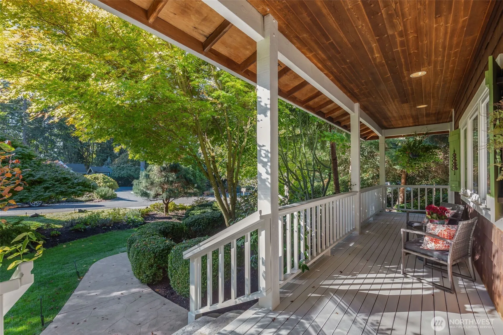 The best of everything! Welcome to this storybook 3-story brown shingle home w/gated entry, wraparound porches, situated on a quiet cul-de-sac in-town. 3 bedrooms plus a bonus room, 2.5 baths w/large attic above garage. Newly renovated primary bathroom. Updated kitchen w/butcher block counters & stainless appliances, new carpet and a freshly painted interior. Winding paths w/grape arbors & established/mature gardens. Large fenced backyard encloses a unique courtyard driveway, creating a private retreat. Adorable heated shed/playhouse. Situated on a picturque street adjacent to parks & schools w/an easy stroll to downtown. A gem of a home! Installed electric space heaters in garage and shed.
