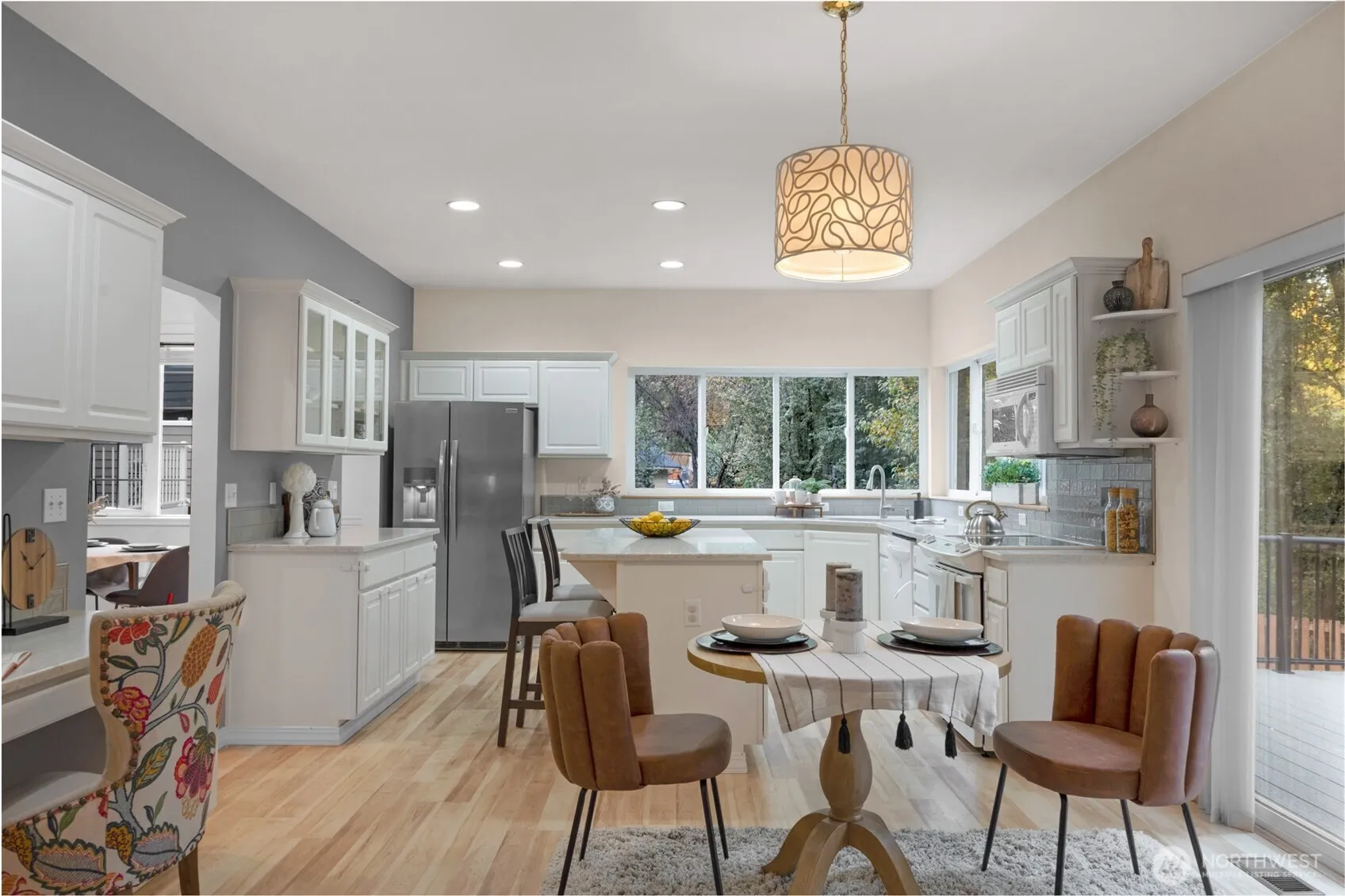 In the desirable Rose’s Meadow neighborhood, this peaceful and gorgeous East Hill retreat seamlessly blends comfort, style, and convenience. Soaring 10-ft ceilings, skylights, and expansive windows flood the space with natural light. The flexible layout offers up to 5 bedrooms, including one on the main level, plus a large kitchen with white cabinetry, quartz counters, island, & views of the private, wooded backyard. Enjoy a newer Trex deck, lush landscaping, and serene outdoor living. The primary suite boasts a spa-like 5-pc bath with soaking tub and two massive walk-in closets. Features include A/C, EV charging, gas fireplace, hardwoods, oversized garage, & newer roof (2021). Enjoy easy access to nearby parks, shopping, and top amenities.