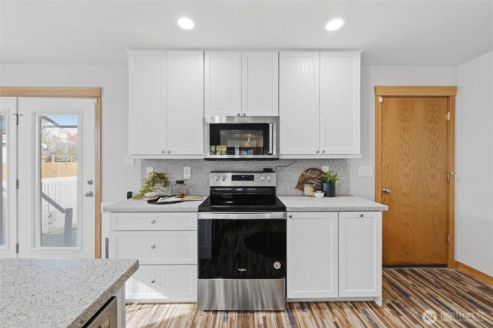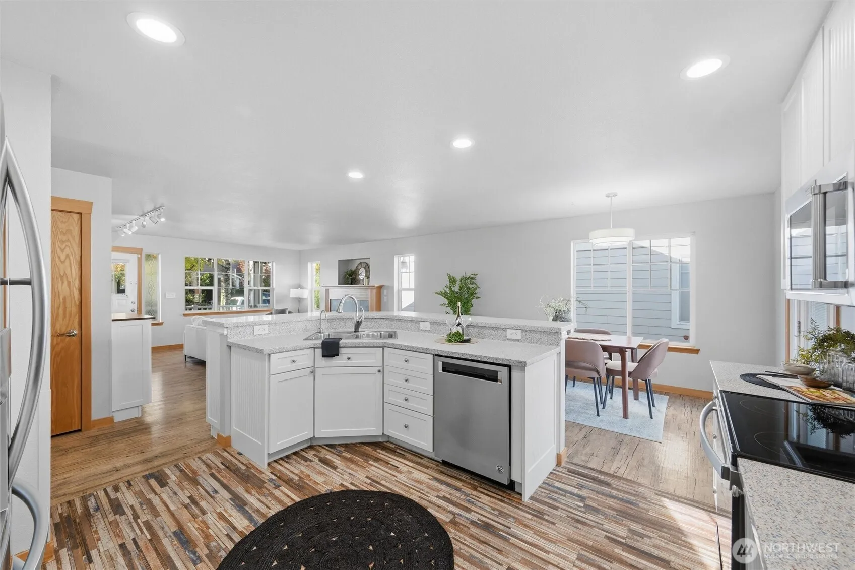 Beautifully updated single-level home in a peaceful Lynden neighborhood! This 3-bed, 2-bath gem features a remodeled kitchen with custom built-ins, open floor plan, cozy gas fireplace with custom mantle, and stylish tile walk-in shower. One bedroom is perfect as a home office with built-in cabinetry. Enjoy year-round comfort with A/C, newer furnace, roof, and energy-saving solar panels. Step outside to a fenced backyard with low maintenance turf, hot tub, and alley-access two-car garage. Fresh exterior paint, covered front porch, and close proximity to a nearby park and sidewalk-lined streets make this a standout choice. Whether you’re downsizing or buying your first home, this well-maintained home offers comfort, convenience, and charm!