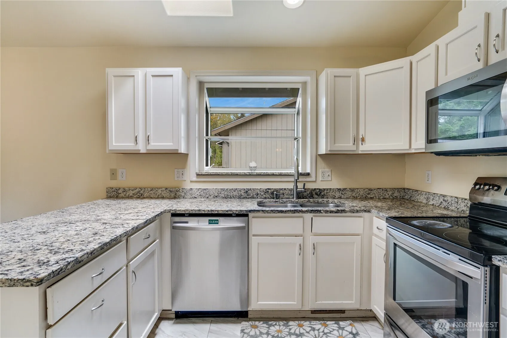 Welcome home to this charming 4-bedroom, 2.75-bath retreat tucked in a quiet cul-de-sac on a spacious corner lot. Thoughtfully updated, it features fresh interior paint, new carpet, durable LVP flooring, and a brand-new roof (2023). The light-filled kitchen shines with granite countertops, stainless steel appliances, and classic tile flooring. Upstairs, the primary suite offers a private ensuite and slider to a cozy deck. The lower level adds flexible living space with a second family room, full bath, and backyard access—perfect for guests or gatherings. With a fully fenced yard, ample parking, conveniently located near shopping, restaurants, with easy access to I-5, this home beautifully blends comfort, functionality, and timeless charm.