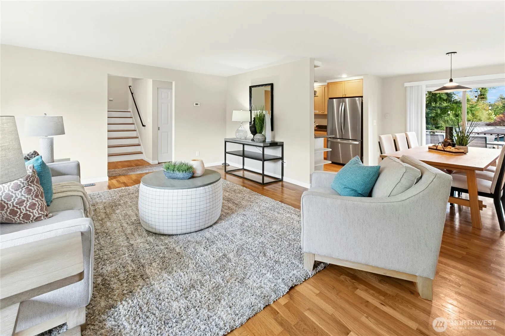 Prime central location close to Microsoft & Grass Lawn Park. Light and bright living room w/ large picture windows, hardwood floors & gas fireplace. Entertaining-sized dining room, updated kitchen with granite counters & SS appliances. Oversized room down could be family room + office. Bath off primary. Giant deck overlooking an expansive fenced yard, perfect for summer BBQs and gathering friends. Private patio off the lower level. AC! Separate laundry room and attached two-car garage. Quiet cul-de sac. Brand new carpets. Award-winning LKW schools. Minutes to shopping, dining & freeways.