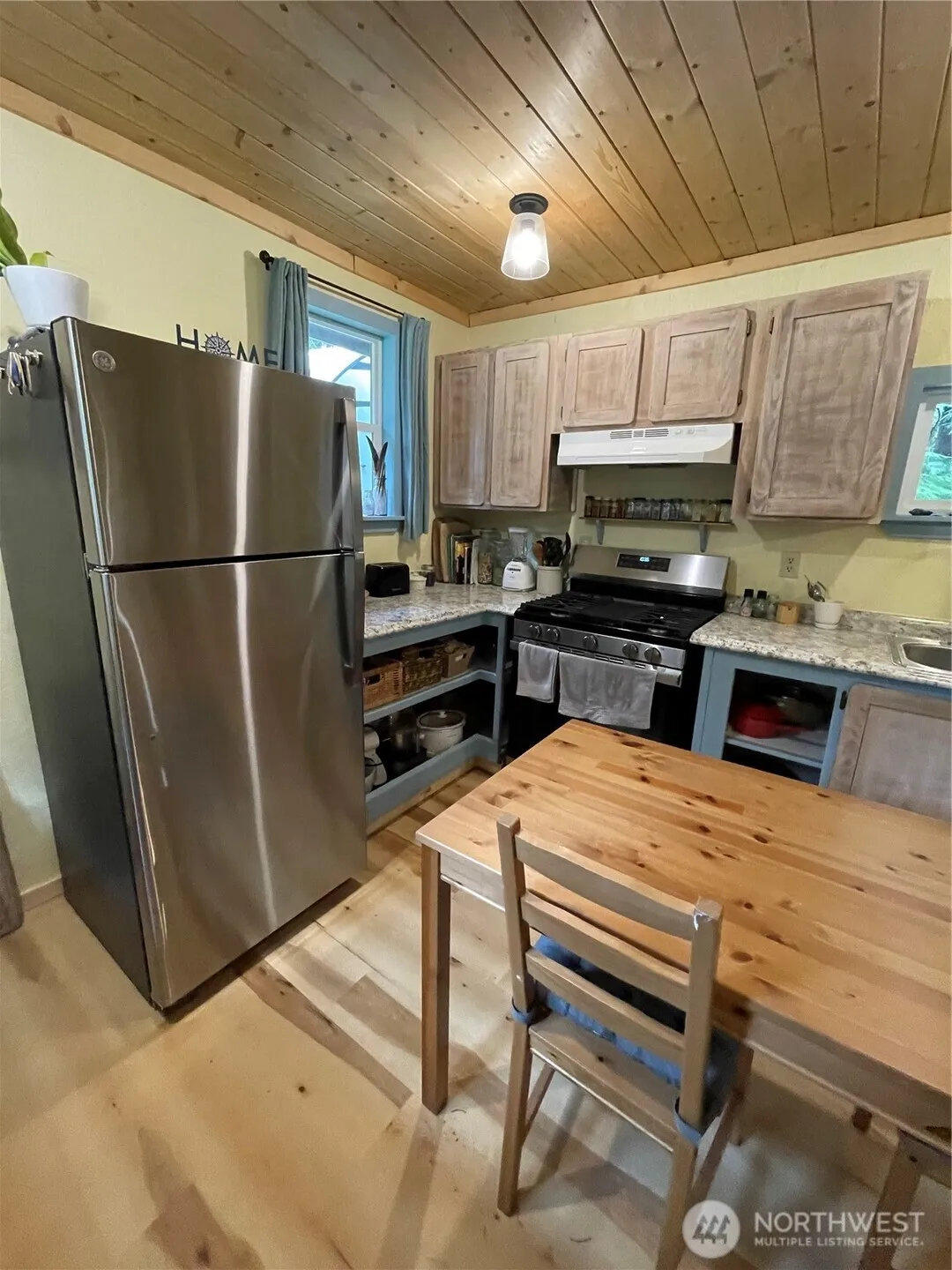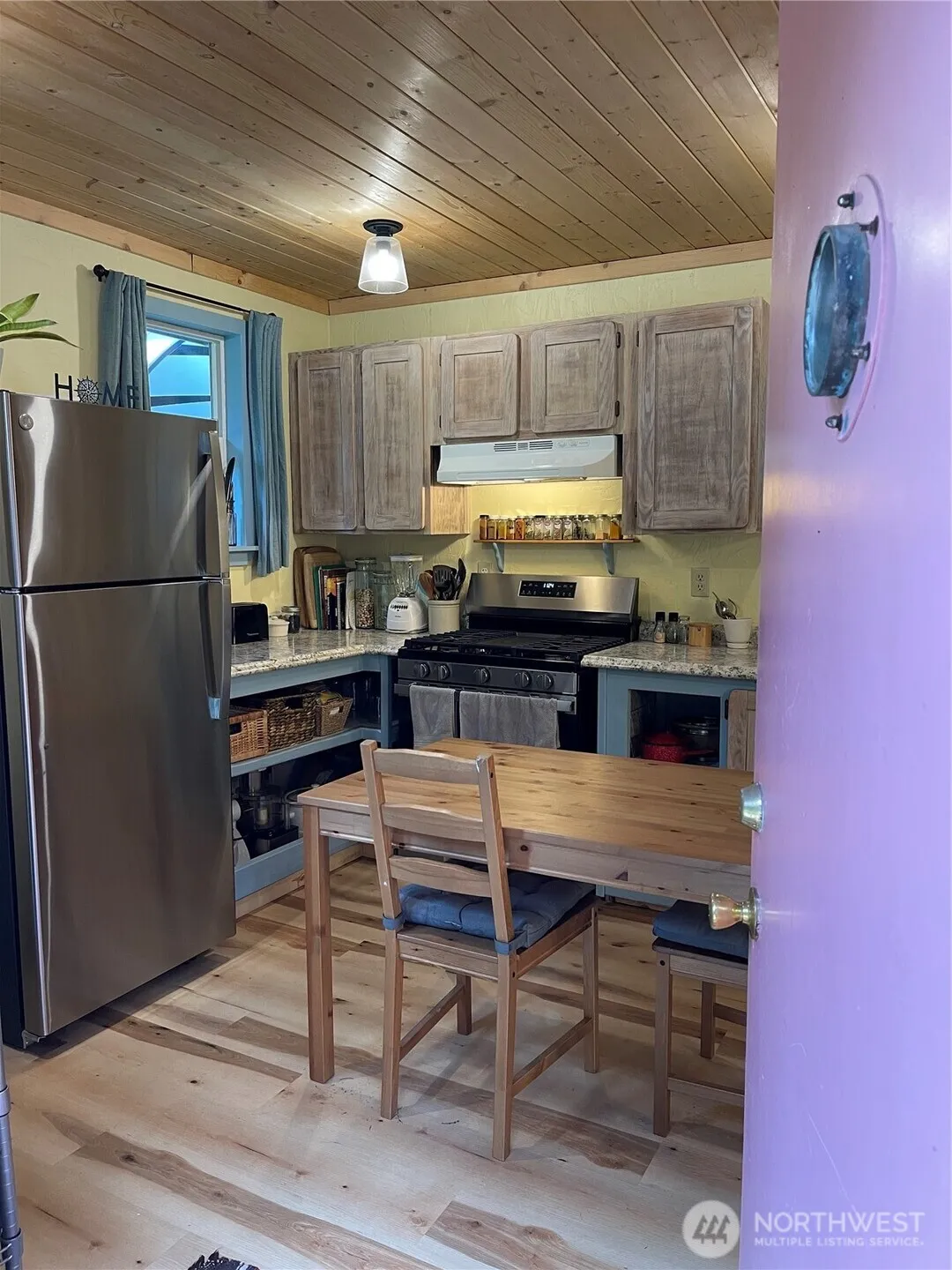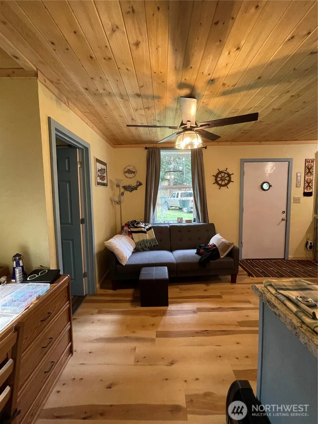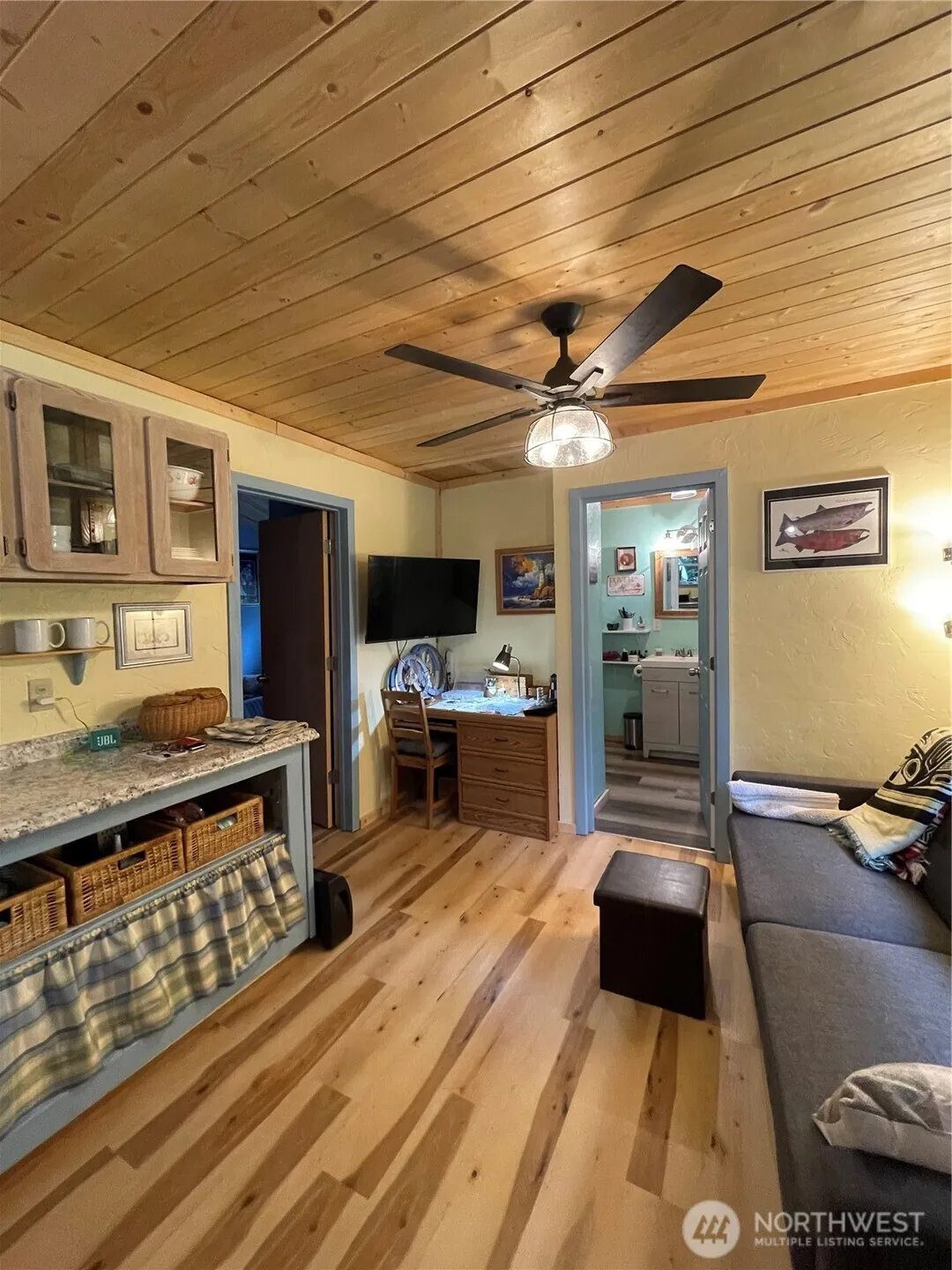 TINY HOUSE, BIG LOT, DOWN A ROAD LESS TRAVELED. On a secluded dead end road in the forest this incredible tiny home shines. Much to offer for low asking price. Double lot room to add garage, newer large shed + storage in pump house. Cedar fence, fire pit, patio, garden, ample R.V. parking area. Beautiful 2021 Forest River 23 ft. R.V. available outside escrow. You’ll say Home Sweet Home as you step into this enchanted cottage. Vintage cabin with newer roof had a renovation that transformed it into a comfortable & inviting living space. User friendly kitchen has propane. Plenty of cupboards & counters. Big trees & open space. Park like setting, quiet oasis. Awesome huge soaker tub with tile. W & D. Check out this gem quick before it’s gone!!