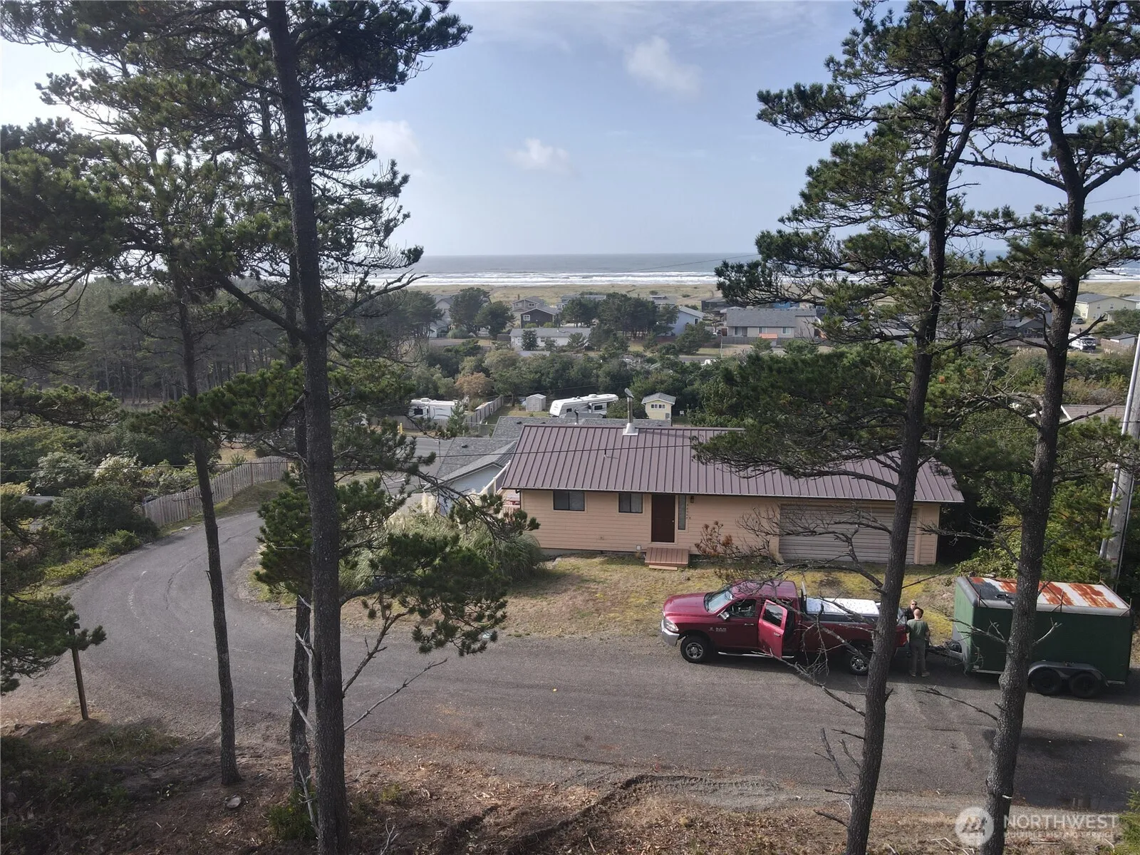 PACIFIC OCEAN VIEWS from a semi-cleared Surfside lot perfect for a custom home. Over $20,000 invested to remove dead trees, saving you time. Access from J Place (preferred) or the cul-de-sac on 300th Pl. Slopped lot with West-highest and the east-lowest elevations-great for dramatic, light-filled design and ocean-view decks. Build your dream coastal home in a serene community with easy beach access and nearby amenities. There is a second lot for sale 1103 300th Pl. These lots are side by side both with Ocean Views.