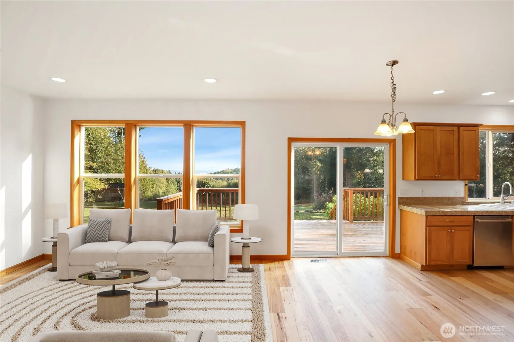 Private & peaceful 5.5-acre retreat only minutes to Kingston waterfront & ferry. Nearly 3,000 sq ft home showcases lovely Mountain & Sound views, plus quintessential charming covered front porch. Inviting foyer anchored by welcoming staircase sets the tone for a spacious traditional interior. Main level open layout includes living room & great room w/gas fireplace, view windows, & slider to freshly stained deck. Entertainers will enjoy formal dining room, butler’s pantry & expansive eat-in kitchen w/ island, newer appliances & ample cabinetry. Upstairs find all 4 bedrooms + bonus room including primary suite w/vaulted ceiling, WIC & full bath. Fiber optic cable provides top-speed connectivity! For Hobby Farmers & Gardeners a dream canvas!