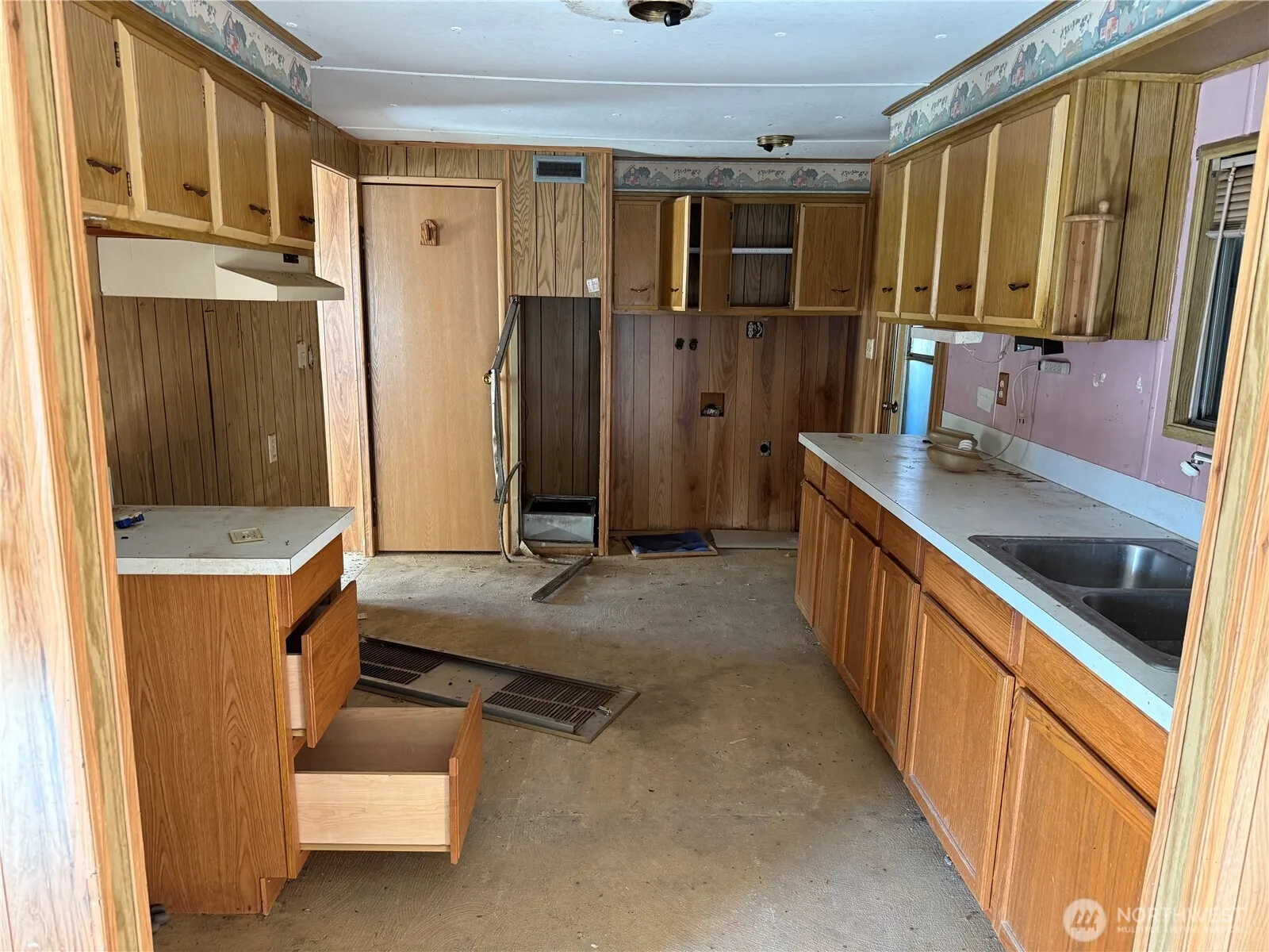Great opportunity in Elma! 1969 Manufactured Home, good sized – partially fenced yard w/ 2 drive through gates. Plus a 2 bay insulated metal shop! Covered & enclosed back porch allows for outdoor storage. Concrete block perimeter foundation. Wood stove to heat those cold winter nights. Property is being Sold As-Is. Seller to do no repairs. Buyer to do their due diligence. This manufactured home is being sold with the land, it is NOT in the mobile home park.