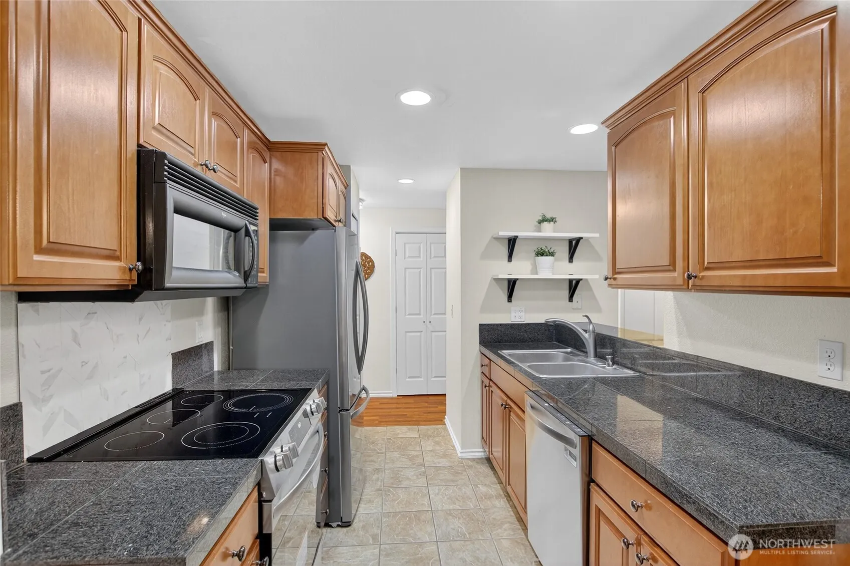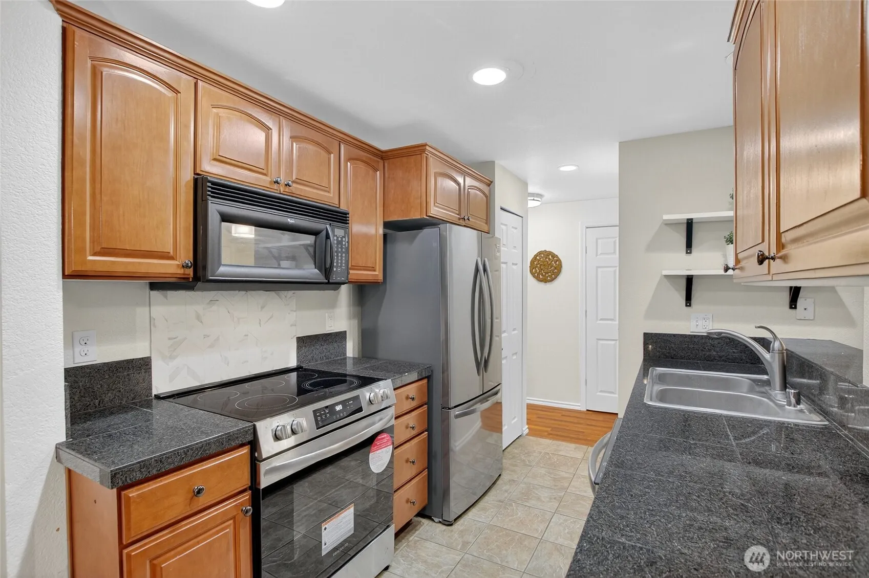 Beautifully updated ground-floor 3BR/2BA condo in Mill Creek’s sought-after Country Club Estates! This spacious home offers a bright, open layout with hardwood, tile, and plush carpet throughout. The remodeled kitchen features granite counters, stainless appliances, custom cabinetry, and a handy pull-out pantry. The inviting living and dining areas flow to a serene patio facing a lush greenbelt. Retreat to the generous primary suite with double closets and updated full bath. Enjoy a private laundry room, ample storage, and reserved covered parking. Community amenities include pools, clubhouse, fitness center, sauna, racquetball, sport courts, playground, trails, & manicured grounds. Close to Town Center, parks, golf, & top Everett schools!