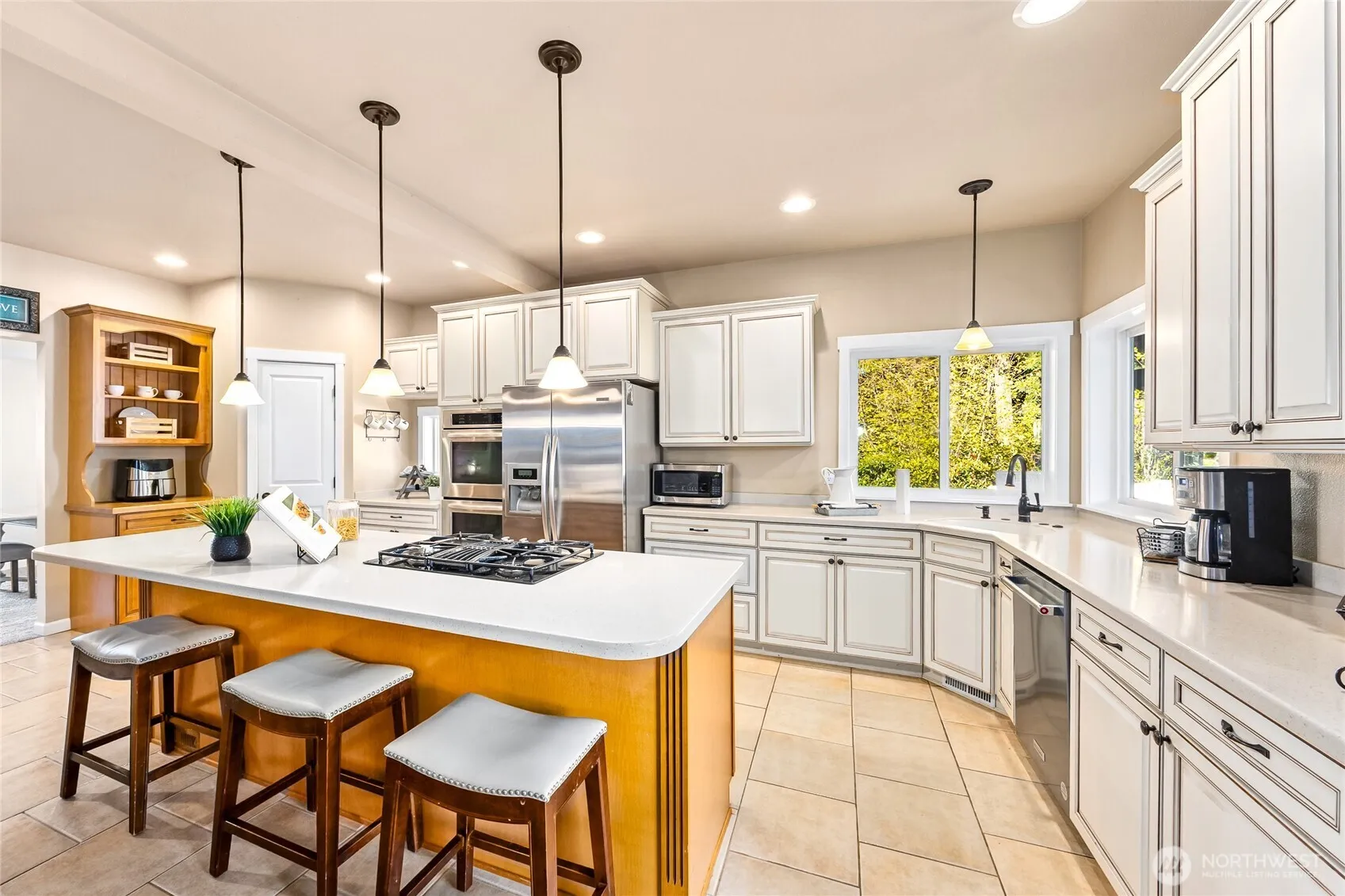 Charming home on a private, over 1/3-acre lot loaded with extras! Enjoy new carpet, fresh comfort from a new A/C unit, and inviting spaces inside & out. The bright kitchen shines with white cabinets, stainless Kitchen-Aid appliances, gas cooktop, double oven, & a breakfast bar island. The spacious primary suite offers a vaulted ceiling, walk-in closet, & stylish tile shower, while oversized secondary bdrms also include walk-ins. Relax on the country porch or host unforgettable gatherings on the covered patio overlooking the sprawling, fenced backyard w/ firepit, pub tables, powered sheds, & greenhouse. RV parking includes 30A plug & sewage cleanout. Custom built-ins, white millwork, & thoughtful updates make this lovely retreat a must-see!