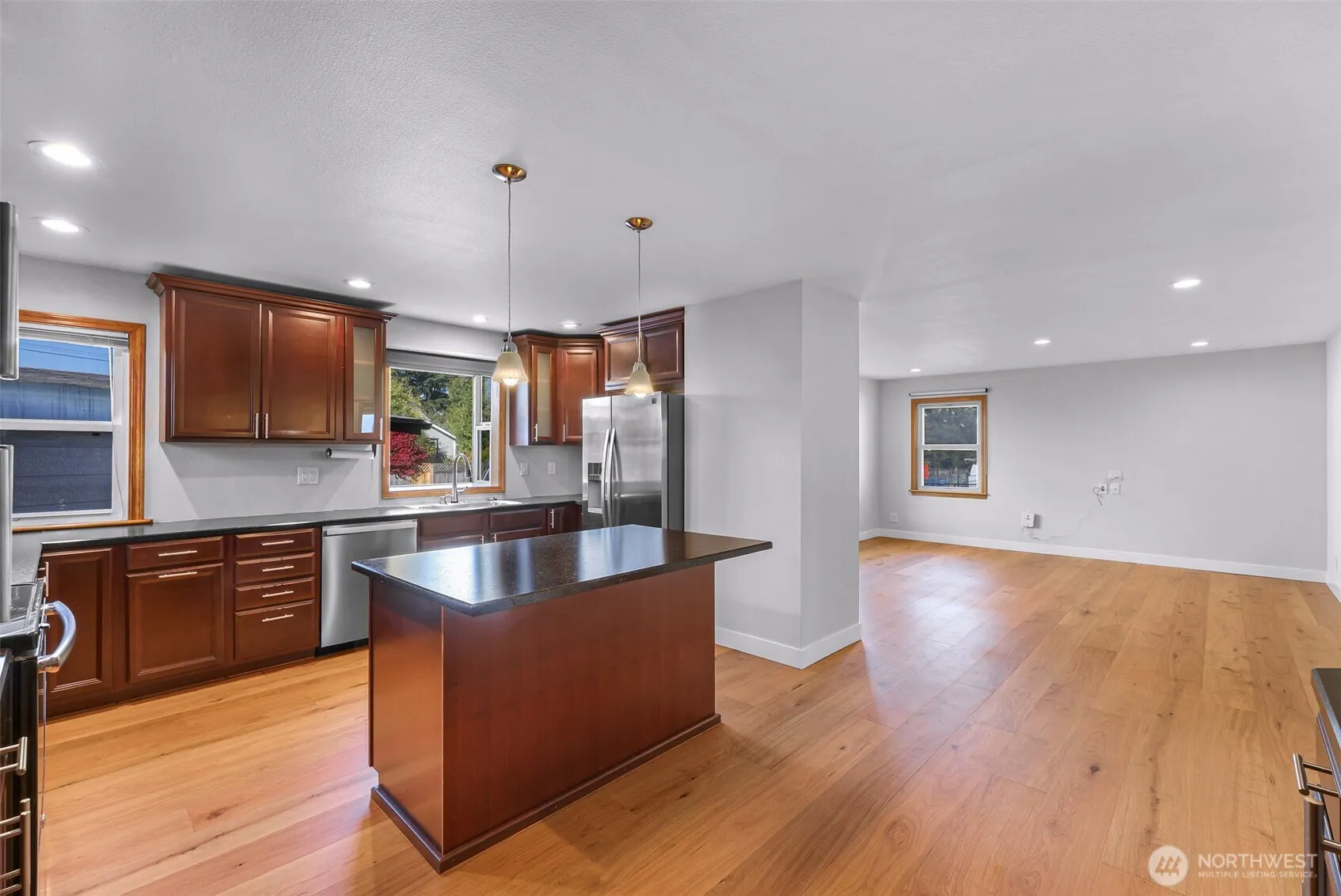 Tucked away in a quiet neighborhood of SeaTac this charming home is offering both comfort and opportunity. Enter to bright, open living spaces with brand-new flooring throughout, and enjoy an expansive kitchen with plenty of counter space and storage. The spacious primary suite features a generous en-suite bathroom and walk-in closet, while approximately 500 sq. ft. of unfinished basement and a large attic provide room for expansion or extra storage. Recent upgrades include a new roof, seismic retrofits, a Mitsubishi central HVAC system, new water heater, updated flooring, and fully redone electrical for modern efficiency. Situated on an oversized ¼-acre double lot with RV parking, black water drainage, and a detached 2-car garage.