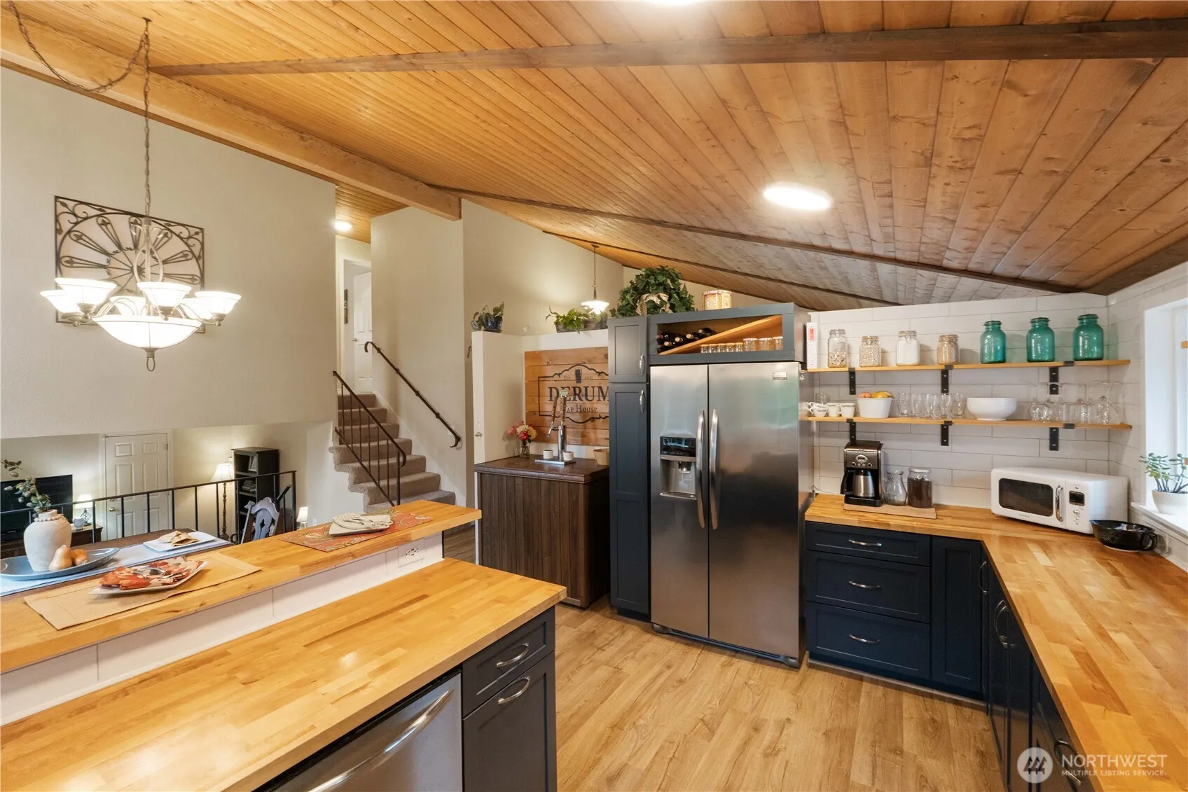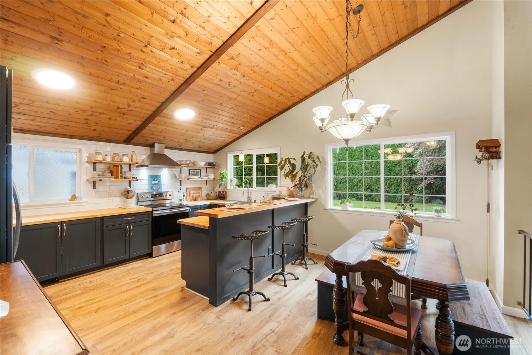 Owners READINESS to move on is to YOUR BENEFIT! Huge adjustment to ask-price on fantastically updated home near Gary Grant Park, Soos Creek Trail & schools. This 4-bed, 2.5-bath home features a fully-equipped outbuilding with water & heat — ideal for studio, office, or guest suite. Absolutely gorgeous kitchen remodel showcases white subway tile, custom cabinetry, new stainless appliances, butcher-block counters & abundant breakfast bar with separate dining. Main level interior features soaring vaulted tongue-n-groove wood ceilings. Private yard with new cedar fence is perfect for outdoor entertaining. Updates to the home include vinyl plank flooring, tiled ensuite bath, new windows, water heater, and carport. Truly turnkey & move-in readyI