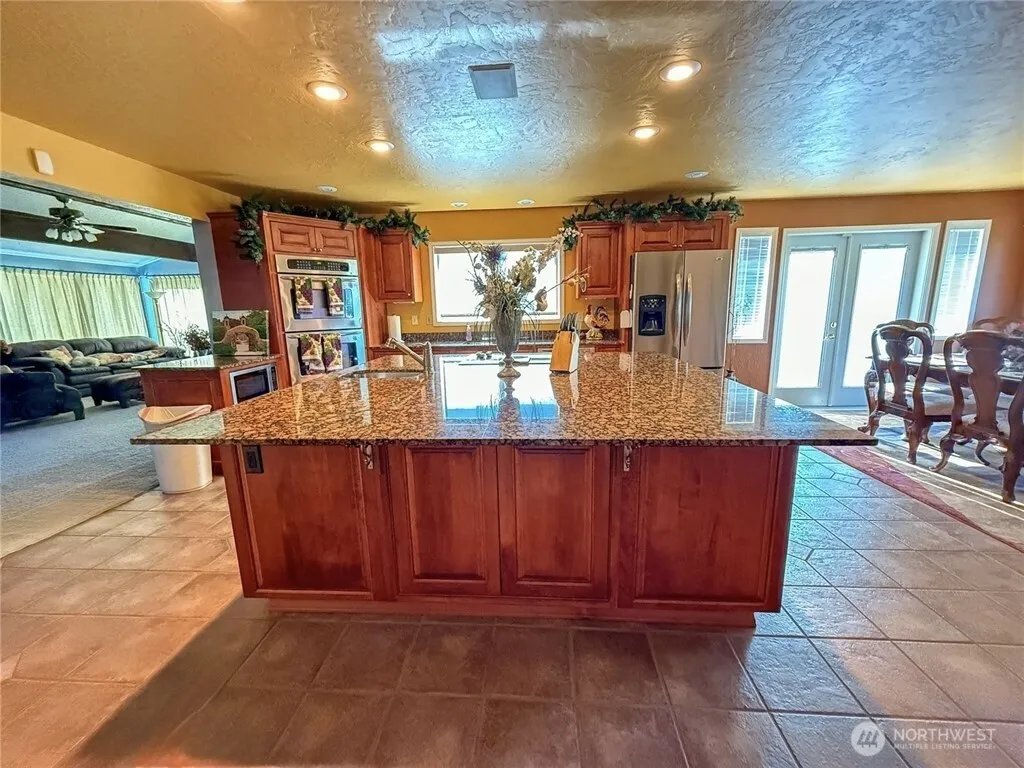 Breathtaking 11-acre property overlooking the Okanogan River Valley! This spacious home features a master suite, 3 bedrooms, 4 bathrooms, and 2 fully equipped kitchens. Enjoy upstairs living with panoramic views, downstairs cozy propane fireplace. The home offers granite countertops, large pantries, new carpet, and laminate floors. Outside boasts 2 hay barns, a tack room, 3 enclosed stalls, 4 fenced pastures with irrigation, 4 outbuildings, a covered patio, large deck, mature landscaping, and an attached 2-car garage with electric doors. There are two very peaceful spaces among the trees for those private times of rest and relaxation. Perfect blend of comfort, function, and natural beauty. Just minutes to town.