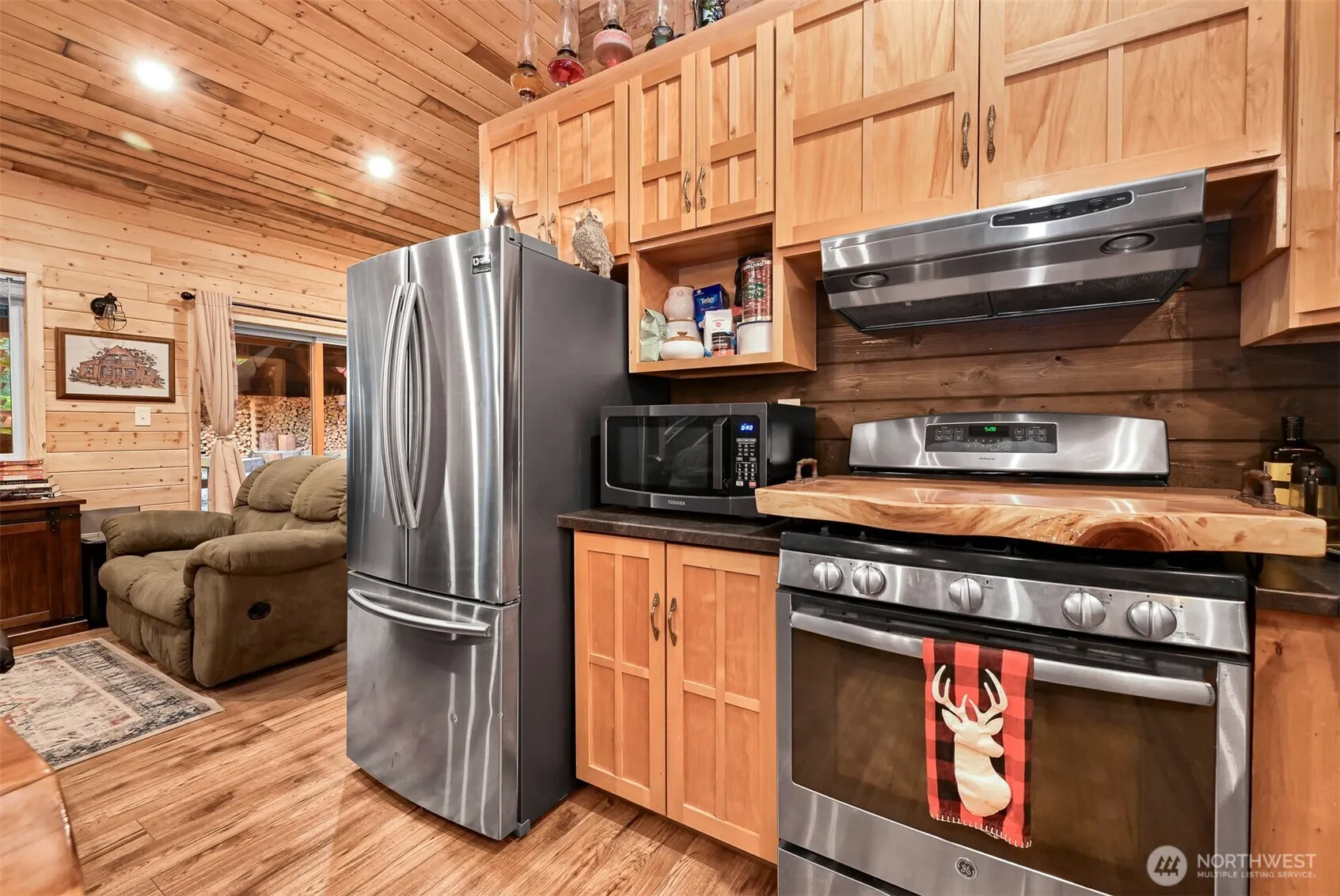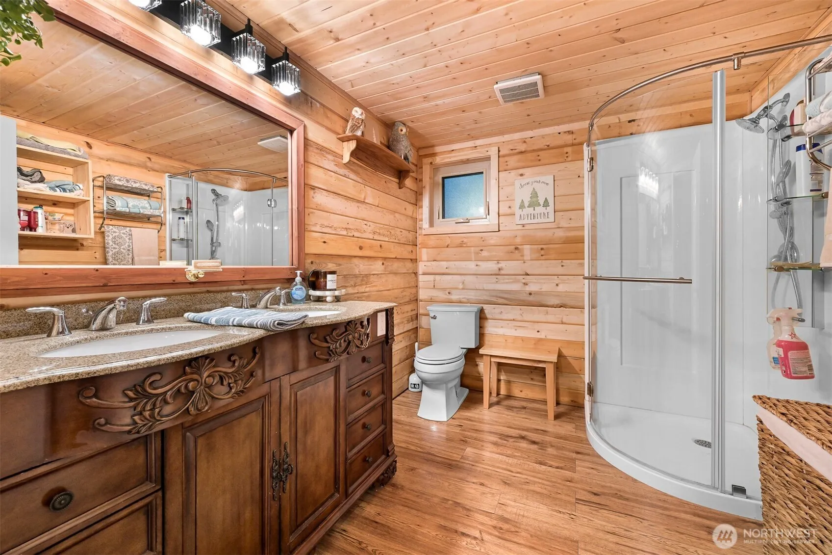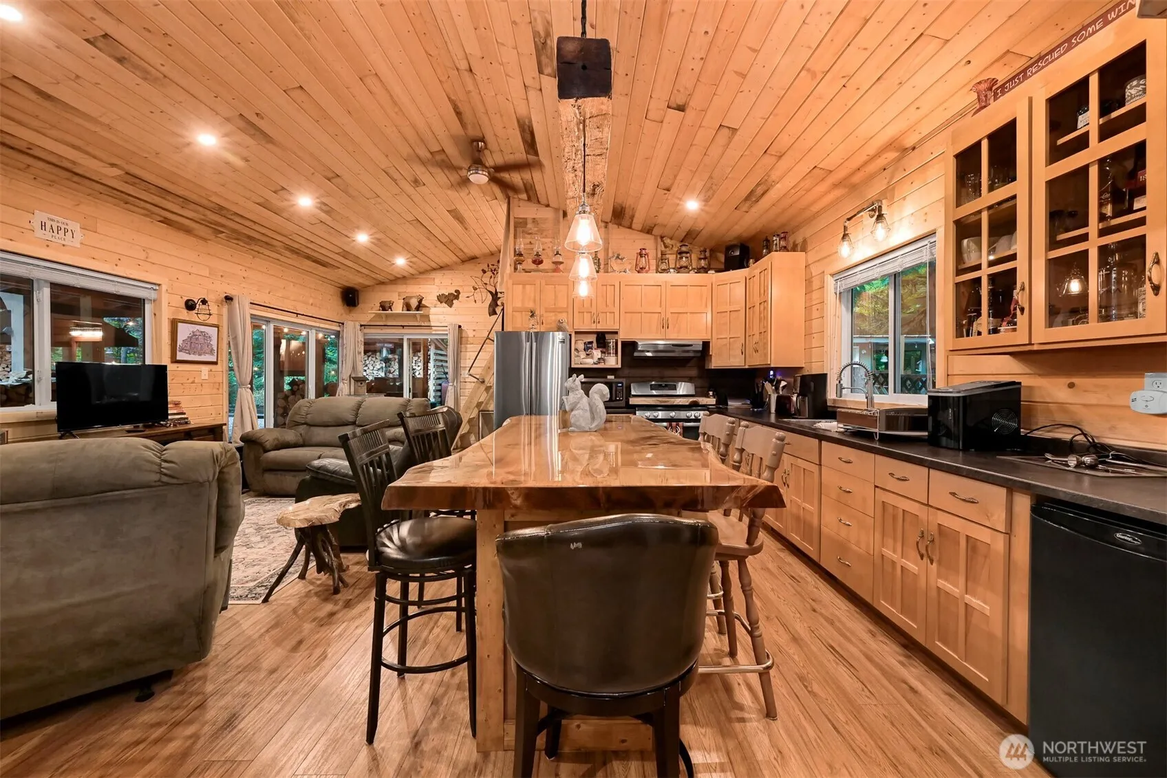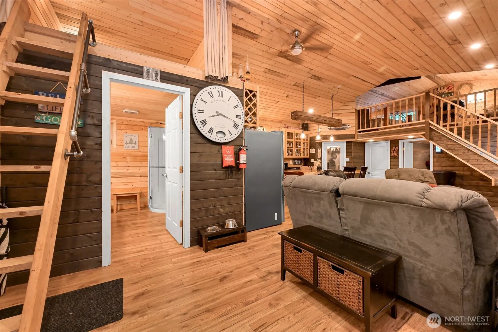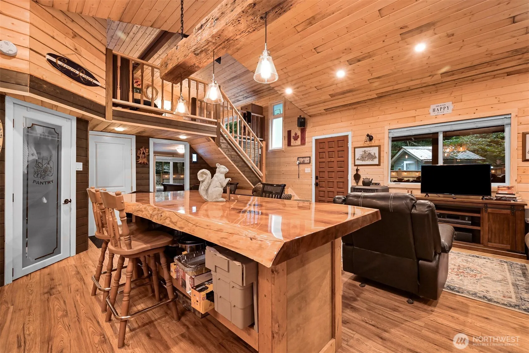 Stunning vacation home in gated Paradise Lakes Country Club! Recently built, this fully fenced retreat features an outdoor gazebo w/fire pit & hood vent, covered porch w/wood stove, tiki bar, granite counter top area, & storage shed w/.5 bath plus extra shed. Inside boasts tongue & groove pine interior, cedar island, gas stove, walk-in pantry, mounted speakers, recessed lighting, pellet fireplace, golf cart garage, and spacious bedroom. Upstairs offers a primary suite w/king bed, electric fireplace, mounted TV & sitting area, plus a loft w/queen bed on the opposite side. Enjoy community amenities including pool, clubhouse, playgrounds, trails, and nearby lakes, rivers, and skiing. Zoned recreational—120-day use per year.