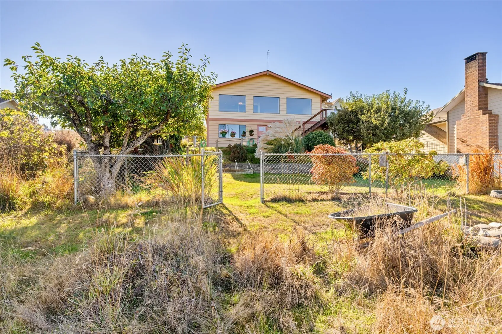 BIG views of Canada, the Straits, Mt. Baker & Coast Guard Station from this property, located in a prime location near the water, trails, parks & town! All living can be done on the main level too! Enjoy cozy evenings by the wood stove, surrounded by huge picture windows that let in incredible natural light & views. Step outside to a composite deck overlooking a fenced backyard adorned with fruit trees; plum, pear, cherry & apple, plus a delightful strawberry patch & herb garden. Inside, find a comfortable layout, lots of closets, attached garage & more. The lower level includes a rec room, two extra rooms & an additional bedroom. Accessibility is a breeze with a ramp leading to the covered porch. This home has it all—come see it today!