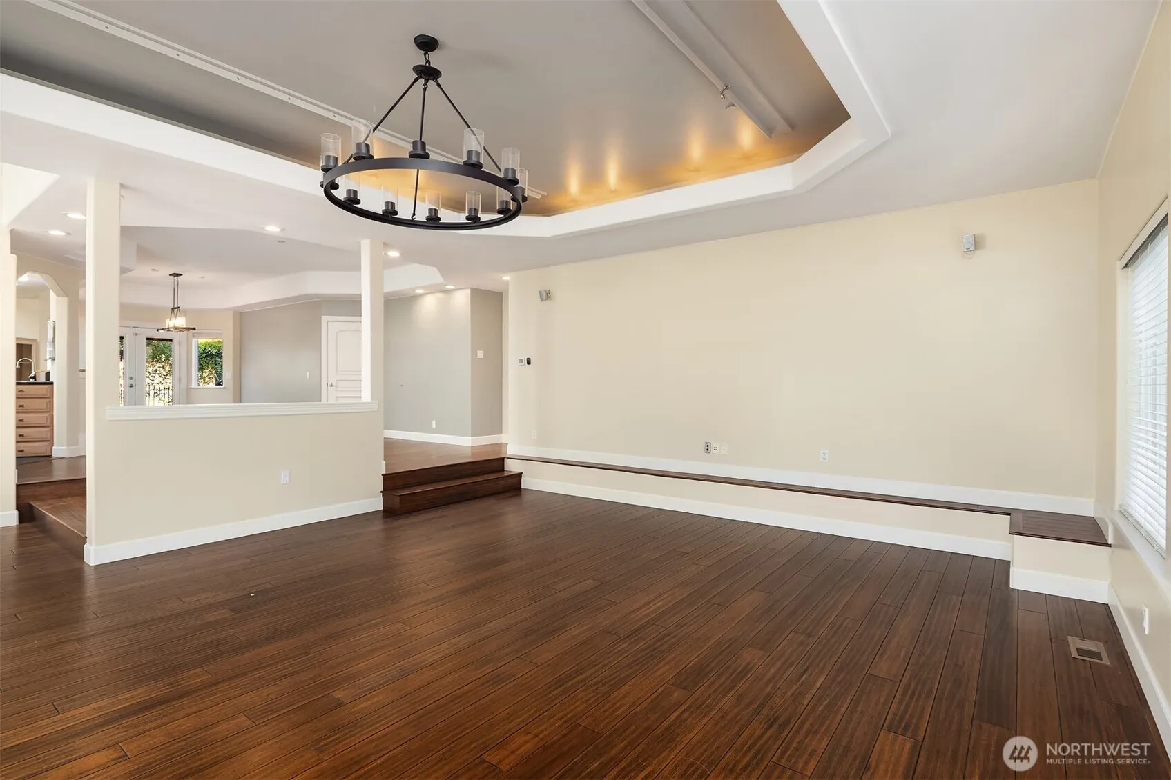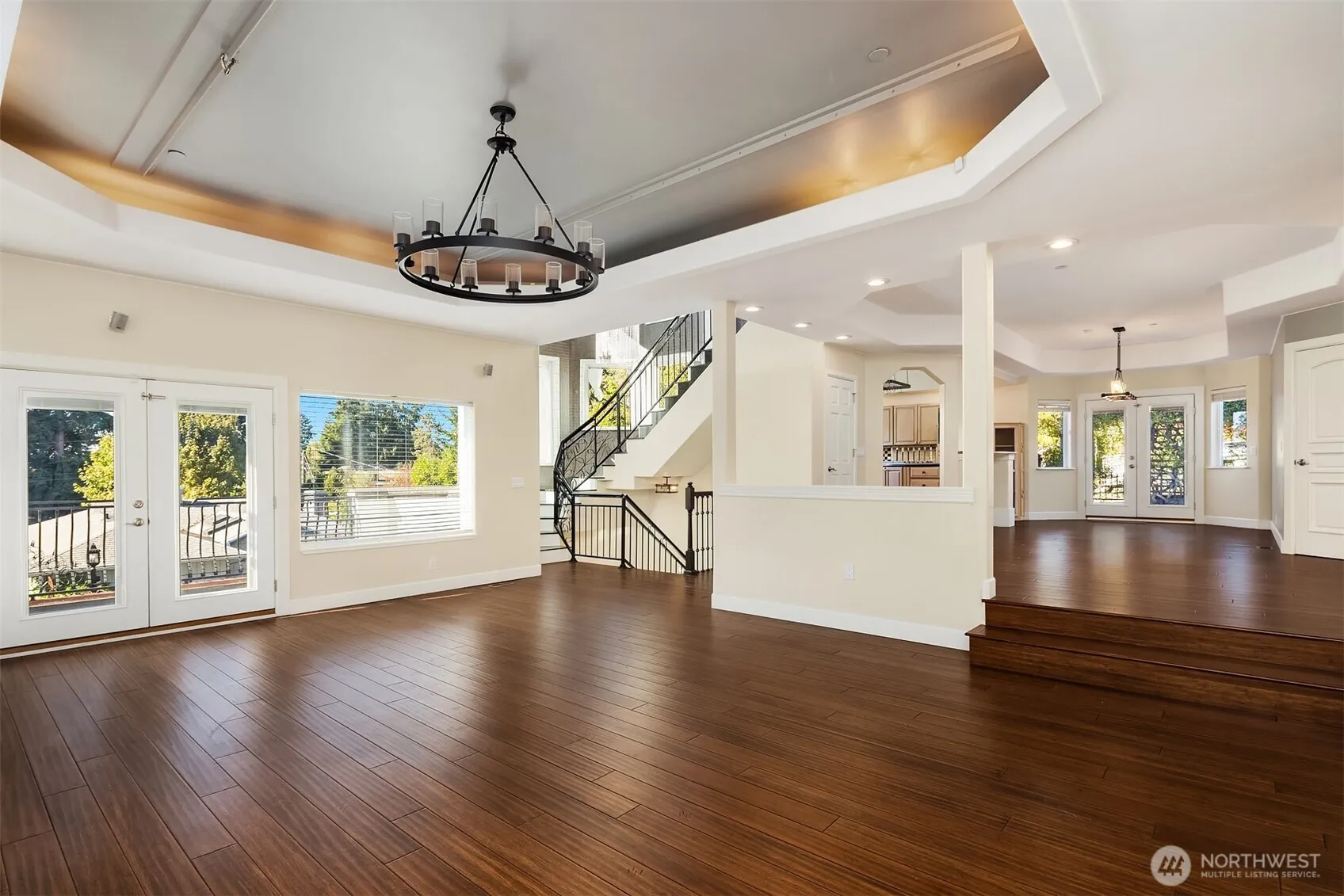 Incredible value in desirable Shorewood, blocks from Puget Sound. Featuring unique, high-end materials and nearly 3800 sqft on 3 floors- with room for all! At the center, a curved 3-story stairwell graced by a 20-foot chandelier. West-facing wall of windows fills the spacious living room with natural light. Also on main, kitchen & formal dining opening to stone patio w/gazebo, media room w/110” projector screen, den/office, & powder room. Upstairs, 4 large bedrooms & laundry. Primary suite boasts a balcony, water & mountain views, & 5-piece marble bath w/heated floor. On top floor, recreational/hobby space and another view balcony! Beautifully maintained with $100K of recent upgrades, incl. energy-efficient heat pump & AC. A rare find.