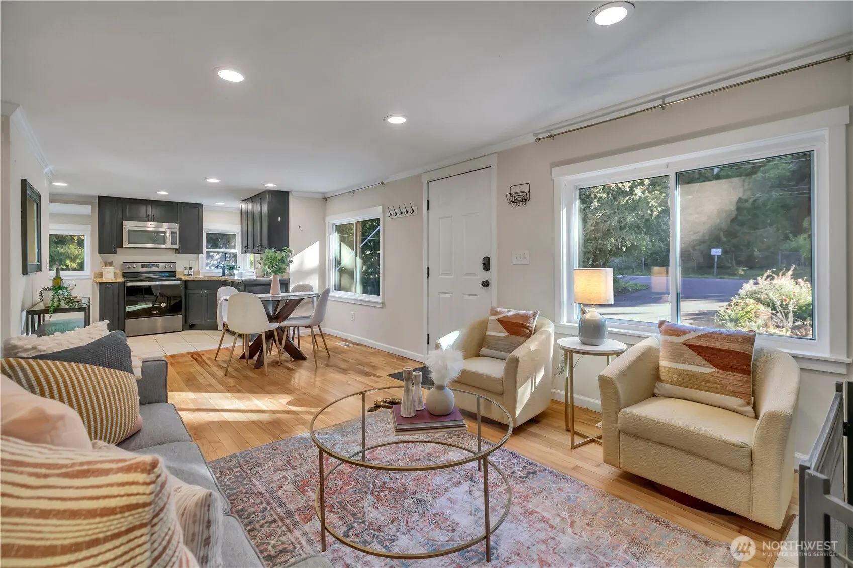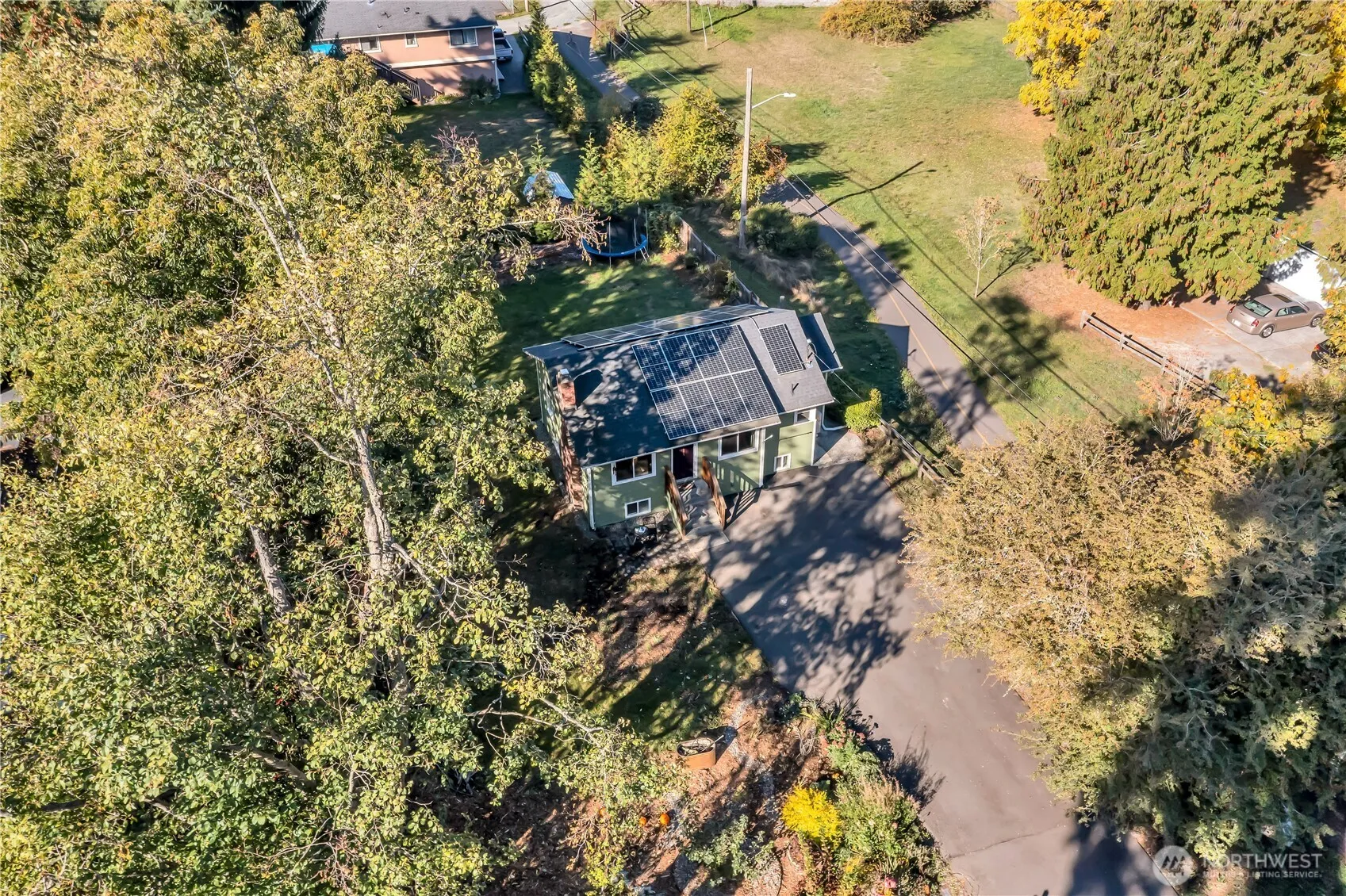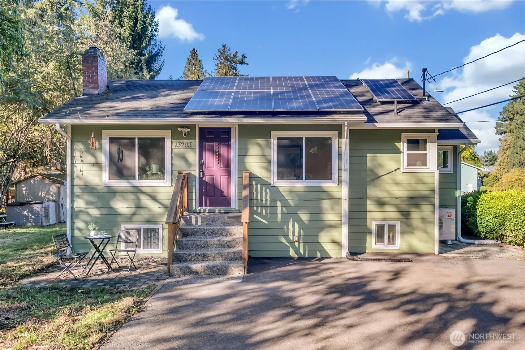 Extremely Charming 1940s bungalow on a shy quarter acre, thoughtfully maintained and upgraded for modern, energy-efficient living. Light-filled living room with cozy wood-burning fireplace and eat-in kitchen w/granite counters & stainless appliances. Flexible layout includes 4 bedrooms, 2 full baths & lower-level bonus room offering great versatility. Pre-inspected for peace of mind. Upgrades in past few years include New Roof, New Heat Pump, Triple-pane Windows, Exterior Paint & Owned Solar Panels that power the home nearly year-round with only minimal winter utility costs. The large, level lot offers ADU/DADU potential & features a thriving pollinator garden w/native plants, a multi-graft apple tree, and young cherry & plum trees.