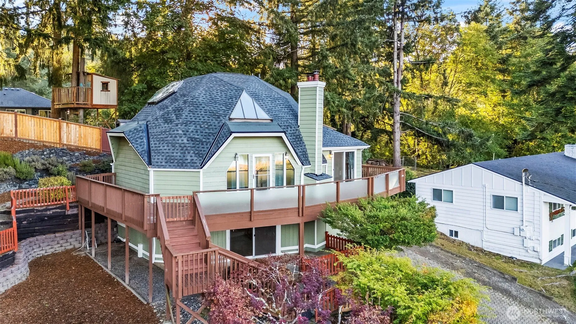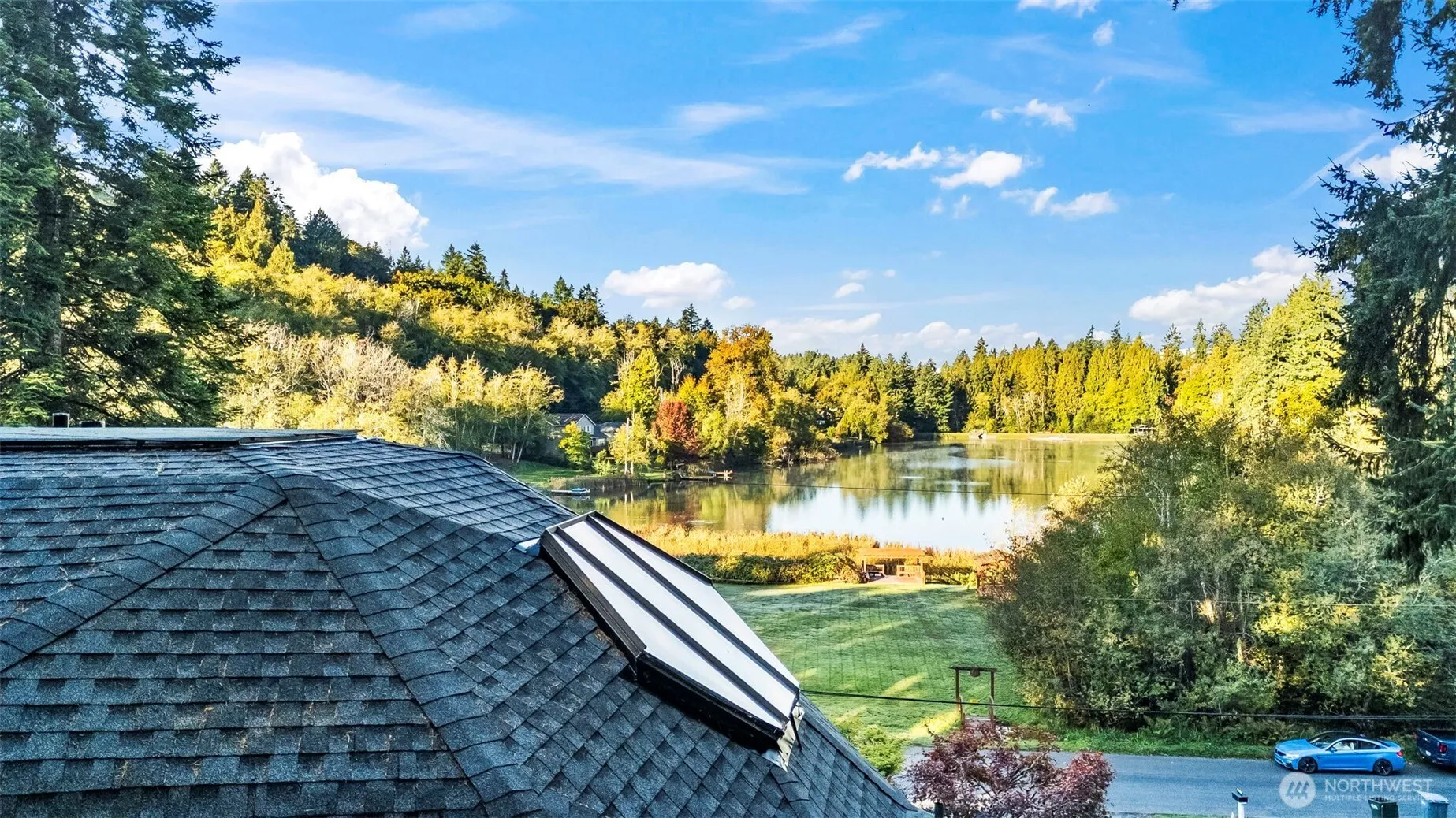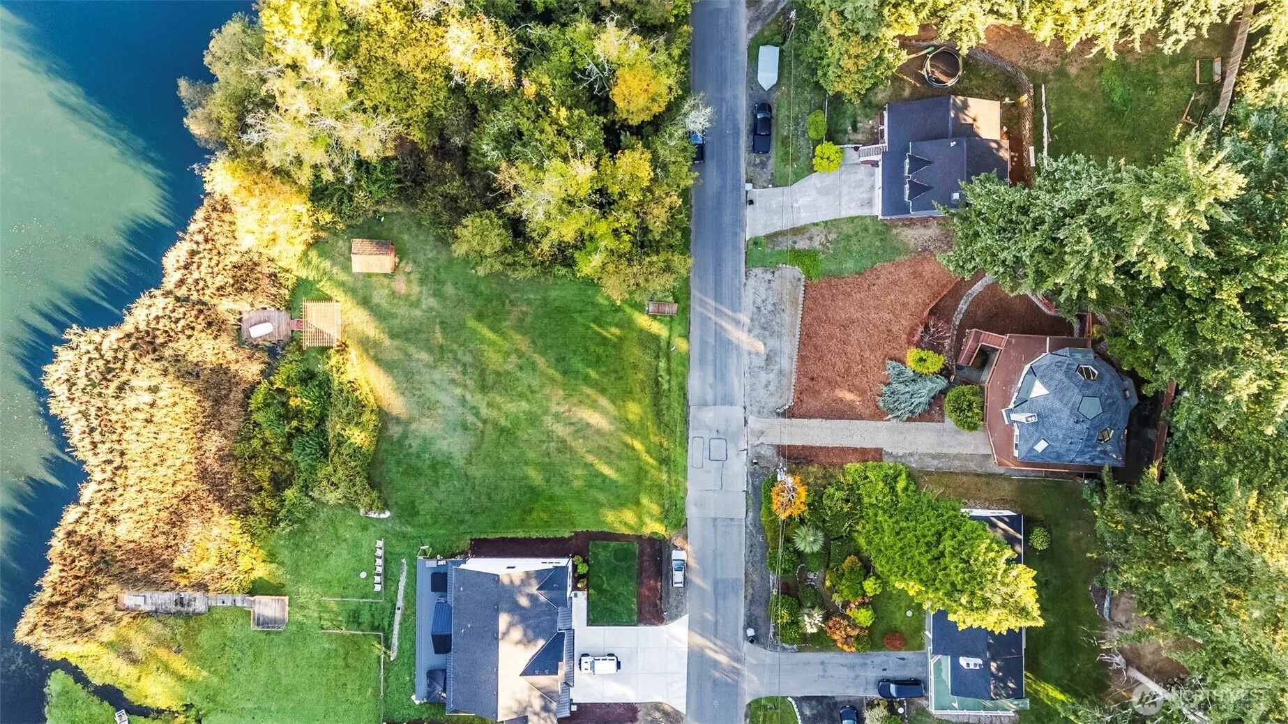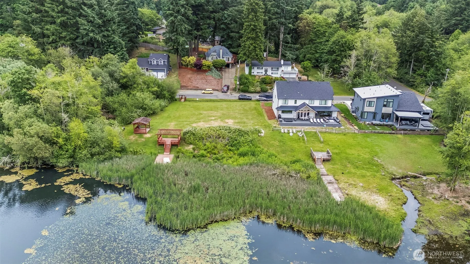 Featuring 148′ of lakefront bliss with gazebo and dock, here in the sought after community of Sylvia Lake you will find this over 2600 Sq ft home that lives big with an open concept and has so much to offer! With .7 acres in total and three parcels offering level serene lakefront, this residence is boasting architectural flair with intentional design including tons of windows and skylights capturing sunlight and a wraparound deck with sweeping lake views. Enjoy 3 bedrooms, 2 fireplaces, an office, full bath on each level, an extra-deep garage with shop and dedicated guest parking! This prime close-in location near shopping, schools, and parks features an additional community beach, dock and picnic area. Immaculately maintained w/ new roof.