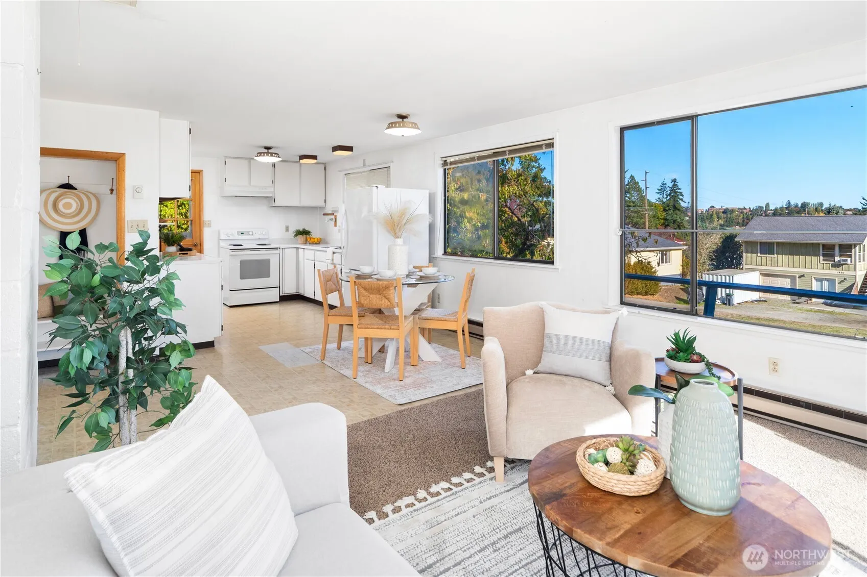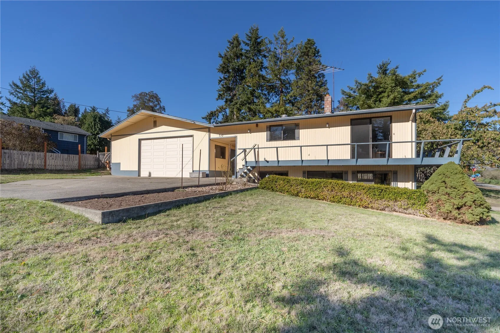 This home offers a lovely territorial view of Kah Tai Lagoon & the courthouse, with stunning sunrises to enjoy from the living room. Set on a corner 10,000sqft lot with fruit trees & garden beds, there’s plenty of room to spread out. The 900 sqft double garage provides abundant project space. Inside, flexible living awaits: upstairs features a kitchen, living room, two bedrooms & a hall bath; downstairs offers a large family room, bedroom, ¾ bath/laundry & a second kitchen. Previously a single-family home & also rented as two units, this centrally located property is ready for your vision.