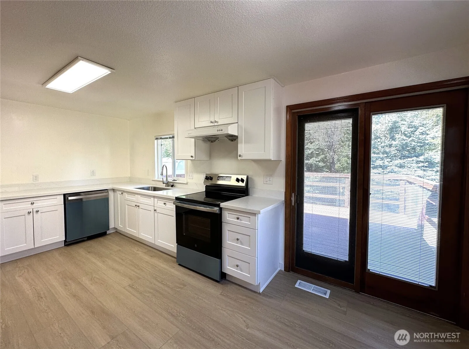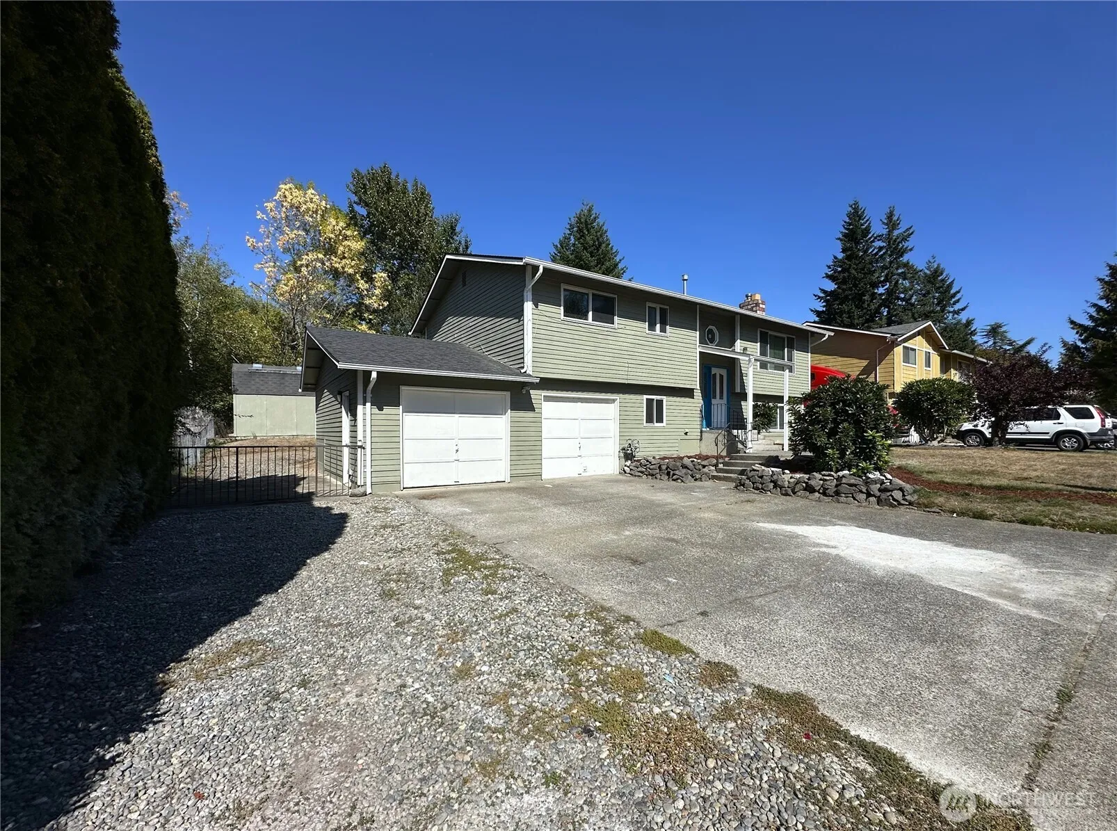 Welcome to this split-entry home featuring fresh interior and exterior paint, new flooring, and a newer roof & gutters. The flexible layout offers 4 bedrooms plus a versatile bonus room, ideal for guests, a home office, or multigenerational living. The fully fenced backyard backs to a peaceful greenbelt and includes a large deck and detached shed/outbuilding—perfect for relaxing, entertaining, and extra storage. A spacious 2-car garage (with additional space for a workshop or storage) and driveway provide ample parking + RV parking. Conveniently located near freeways, shopping, dining, and amenities, this home blends comfort, function, and a desirable location.