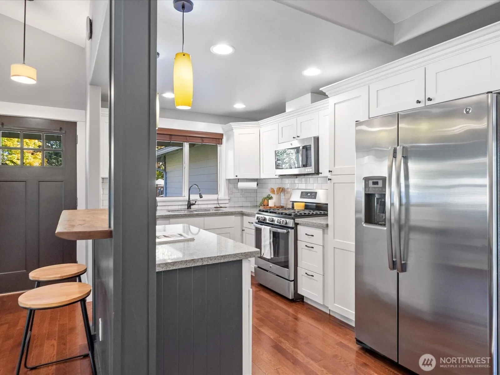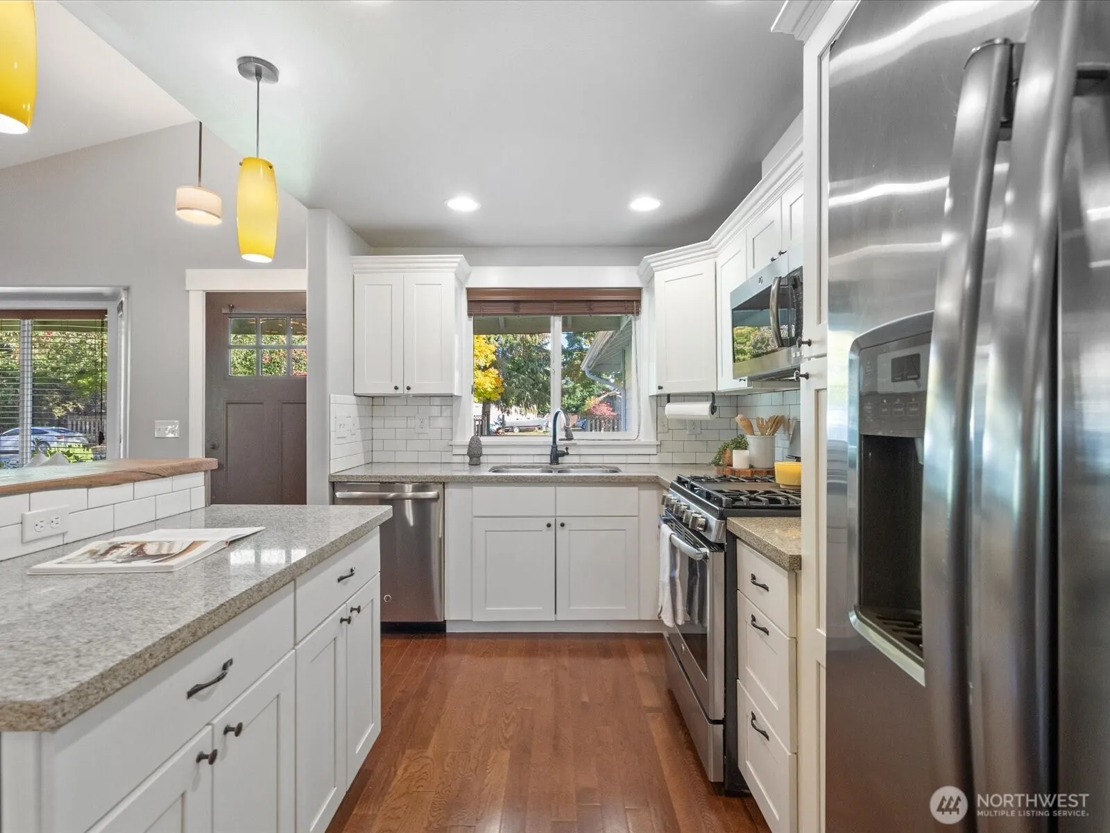 Beautiful 3 bed, 2 bath RAMBLER in the Fryelands! Your new home has been updated & wonderfully maintained. From the expansive walnut hardwood floors & brand new carpet in all bedrooms, to the Quartz countertops, custom backsplash, raised island & matching SS appliances. The primary bedroom is complete w/ attached bathroom & walk-in closet! Efficient heating & cooling w/ new heat pump! Recent 50 yr. roof & new water heater. You’ll have a 2 car attached garage & electric vehicle charging station. The fully fenced yard with firepit is a wonderful spot to relax & enjoy the evening! Home backs up to Currie View Park w/brand new play equipment. Super close to Lake Tye (and TONS of parks and trails!) Easy access to 522 & HWY 2 & shopping!