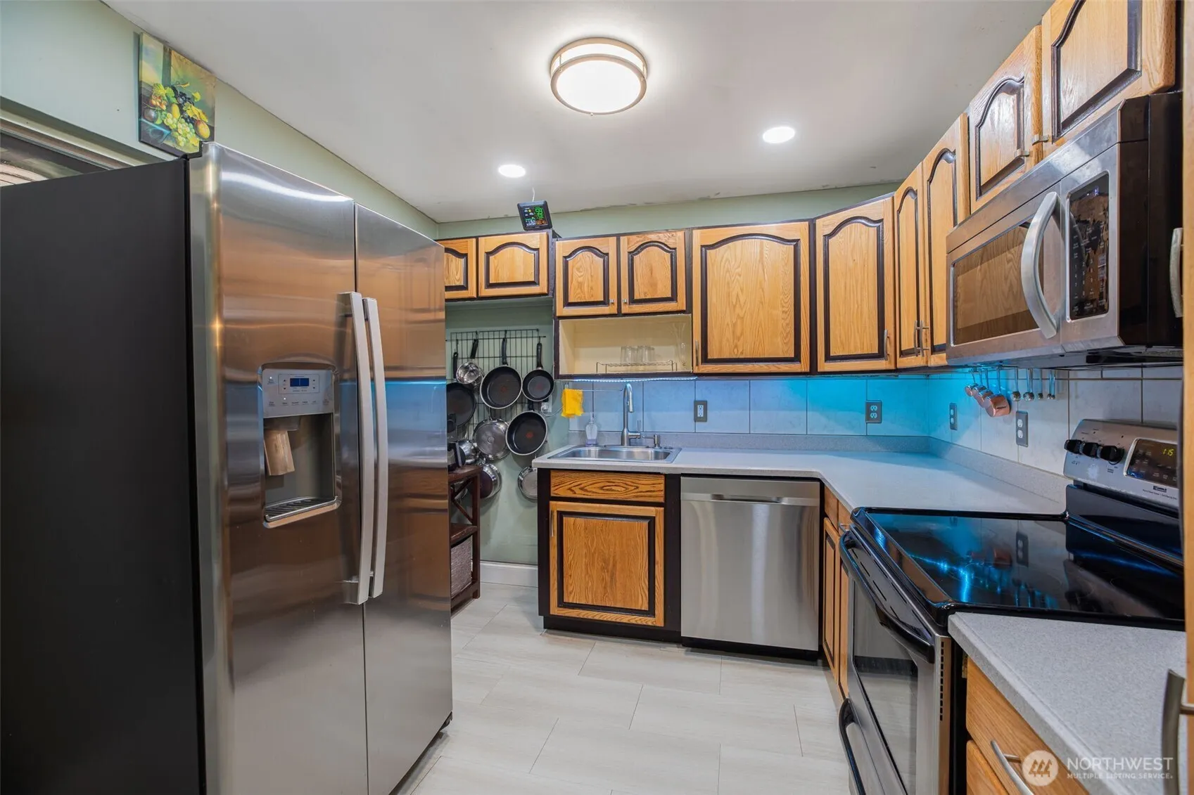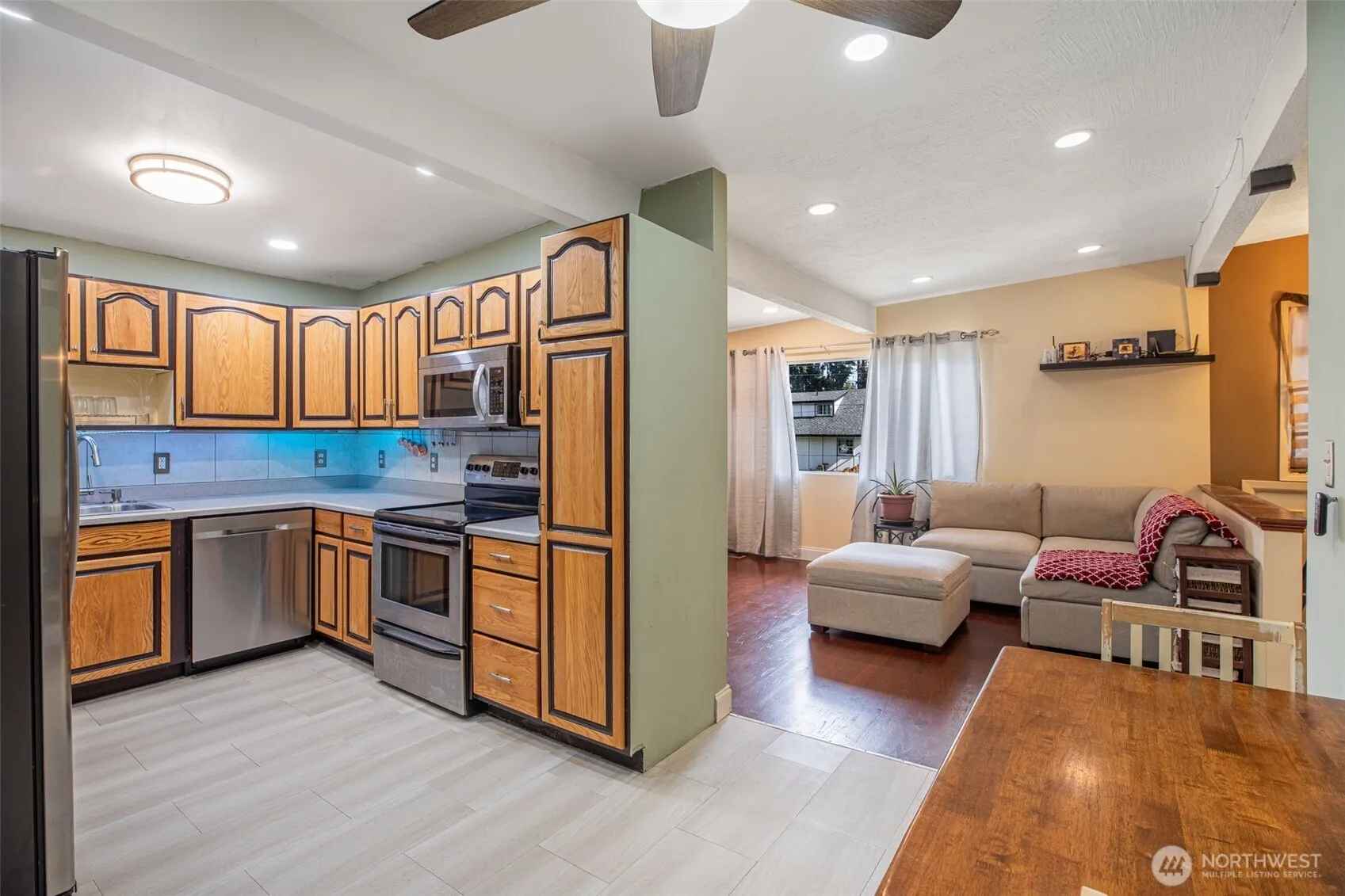 Charming 3-bedroom home on a spacious, level lot! Bright and vibrant interiors feature smart lighting in multiple rooms, easily controlled from your phone. The kitchen is a cook’s delight with soft-close cabinets and the perfect spot for hanging pots and pans. Enjoy hardwood floors, a cozy wood-stove fireplace for chilly nights, and a roomy laundry area with space for a future second bath. Newer hot water tank. Relax year-round on the great covered deck overlooking the fully fenced backyard with fire pit and shed. Close to shops, dining, and convenient commuting routes, ready for your personal touch to make it your own!