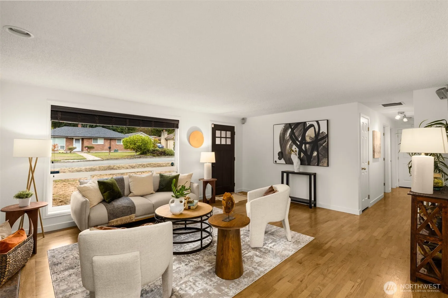 Charming and move-in ready, this single-story brick home lives large on a spacious, flat corner lot. Inside, a remodeled kitchen, hardwood floors, and a stylish fireplace create warmth and character throughout. The flowing floor plan connects open living and dining spaces with three comfortable bedrooms, offering both function and flexibility. Step outside to a huge entertaining deck and firepit area—perfect for gatherings, summer dinners, or quiet evenings under the stars. The oversized detached garage and RV parking provide excellent storage and versatility, with plenty of room to spread out. Classic curb appeal, modern updates, and easy freeway access make this home a standout opportunity for those looking for everyday convenience.