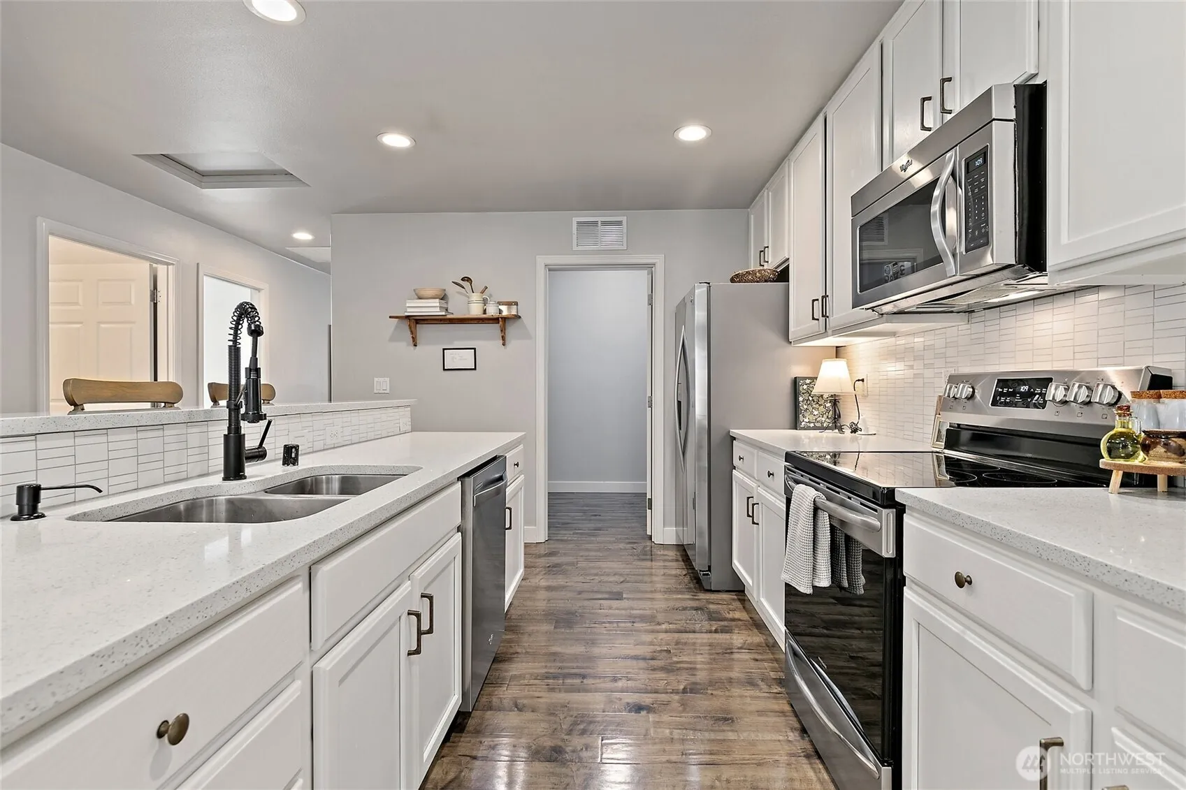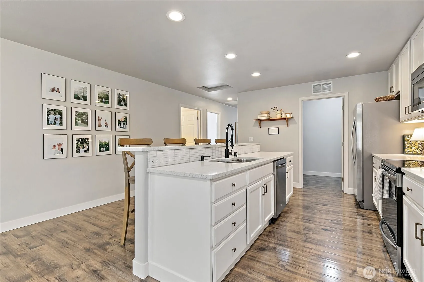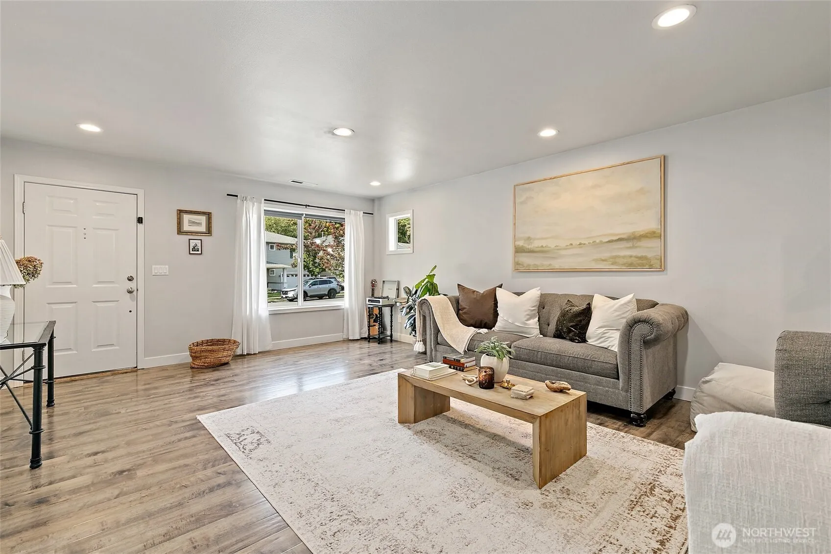 MUST SEE! This rare-find rambler is nestled in a friendly neighborhood with nearby parks for play and relaxation. Enjoy the easy flow with two spacious living rooms, abundant natural light, and tasteful updates—beautifully refreshed, with newer baths, recessed lighting, and a convenient mudroom/laundry area. The kitchen shines with granite counters and ample storage. Step outside to a large, fully fenced yard ideal for entertaining, complete with fruit-bearing apple and cherry trees. Close to parks, shopping, and commuter routes—this home has it all!