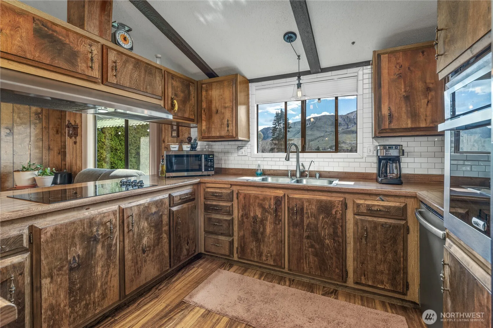 This is a rare opportunity to own a home that offers both comfort and convenience. A prime location in one of Chelan’s most desirable neighborhoods, this home offers stunning views of both the lake and surrounding mountains. The home is perfectly positioned with a five-minute walk to downtown Chelan’s shops and restaurants, Don Morse Park, large public beach and the lake. The secluded backyard is a true gem, featuring a lush garden, trees and plants that creates a tranquil, natural escape. For those in need of extra storage or workspace, in addition to the single car detached garage, this property includes two storage rooms, ideal for keeping tools, outdoor equipment, or even creating a workshop for hobbies and projects.