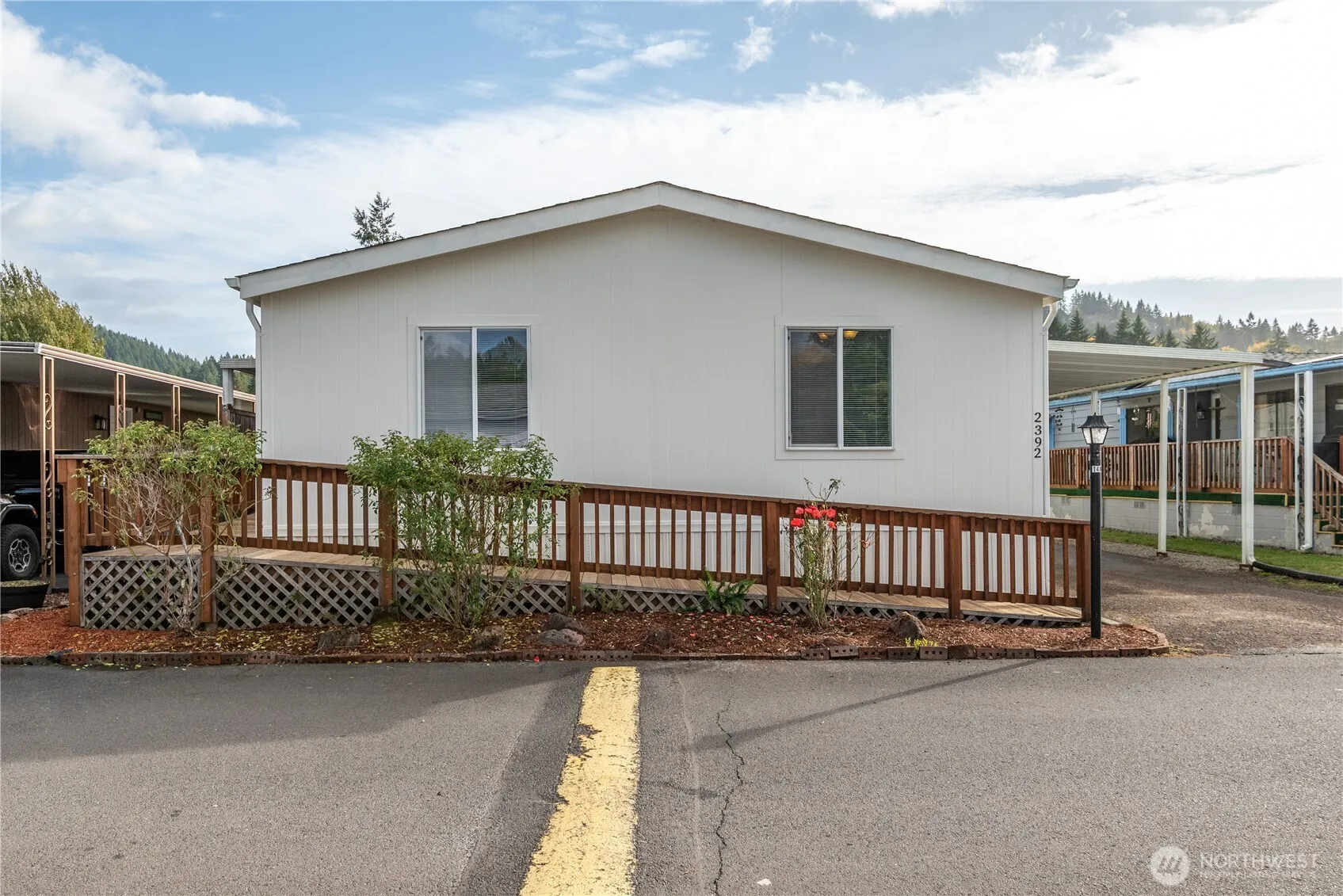 Move-in ready and meticulously maintained, this super clean manufactured home in Kelso’s desirable Brookhollow Estates (55+ community) shines with fresh exterior paint, vaulted ceilings and large windows that fill the home with natural light.The bright kitchen includes a spacious pantry. The primary bedroom features a private bath, while the office could easily serve as a third bedroom. The laundry/mudroom comes equipped with a washer and dryer for added convenience. Recent updates include a NEW heat pump and hot water heater. Outside, a pet-friendly enclosure and a storage shed. The backyard backs up to a walking path along the Coweeman River, offering privacy with no rear neighbors — with space to add fencing. Schedule your tour today!
