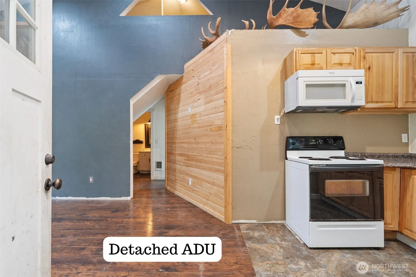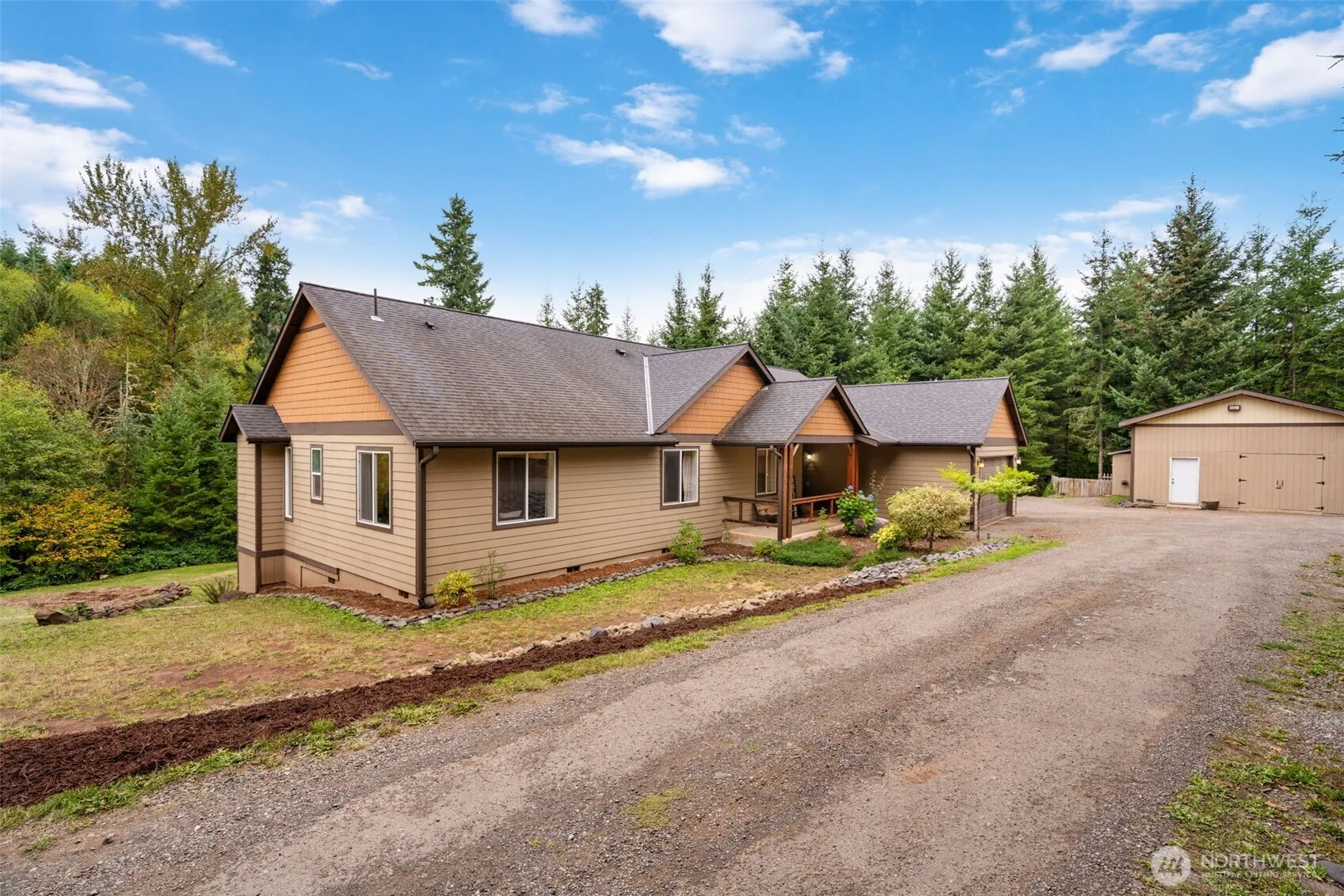 The ideal setup for multi-generational living or rental income! This rare property features a single-level 4-bedroom, 3-bath home plus two ADUs and a shop. The main home offers vaulted ceilings throughout and two private suites, plus a functional layout with forest views from every room. The attached ADU includes 1 bedroom, 1 bath, washer/dryer hookups, and office nook. The detached ADU adds even more versatility with 1 bedroom, 1 bath, laundry hookups, and a loft—great for guests or additional income. Enjoy room to explore outdoors, with paved trail access on the property and a private path leading to the creek. All just three minutes to the freeway. Schedule a tour today! 3D Tour available upon request.