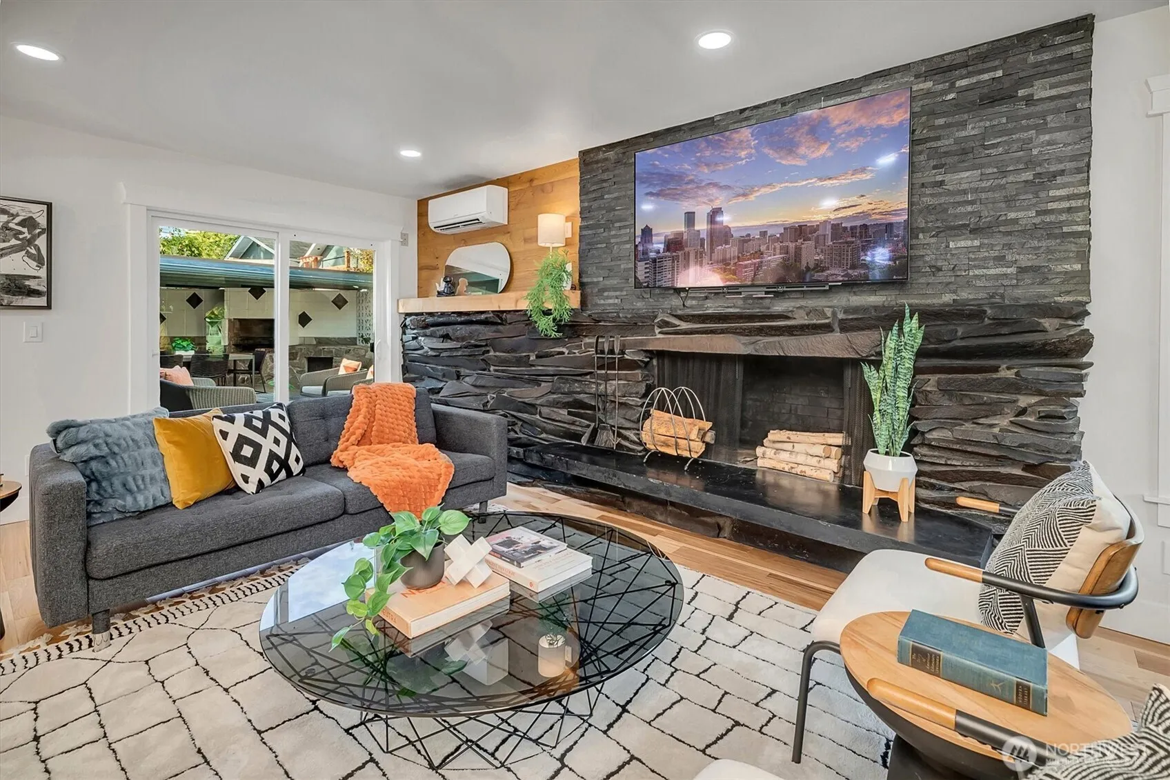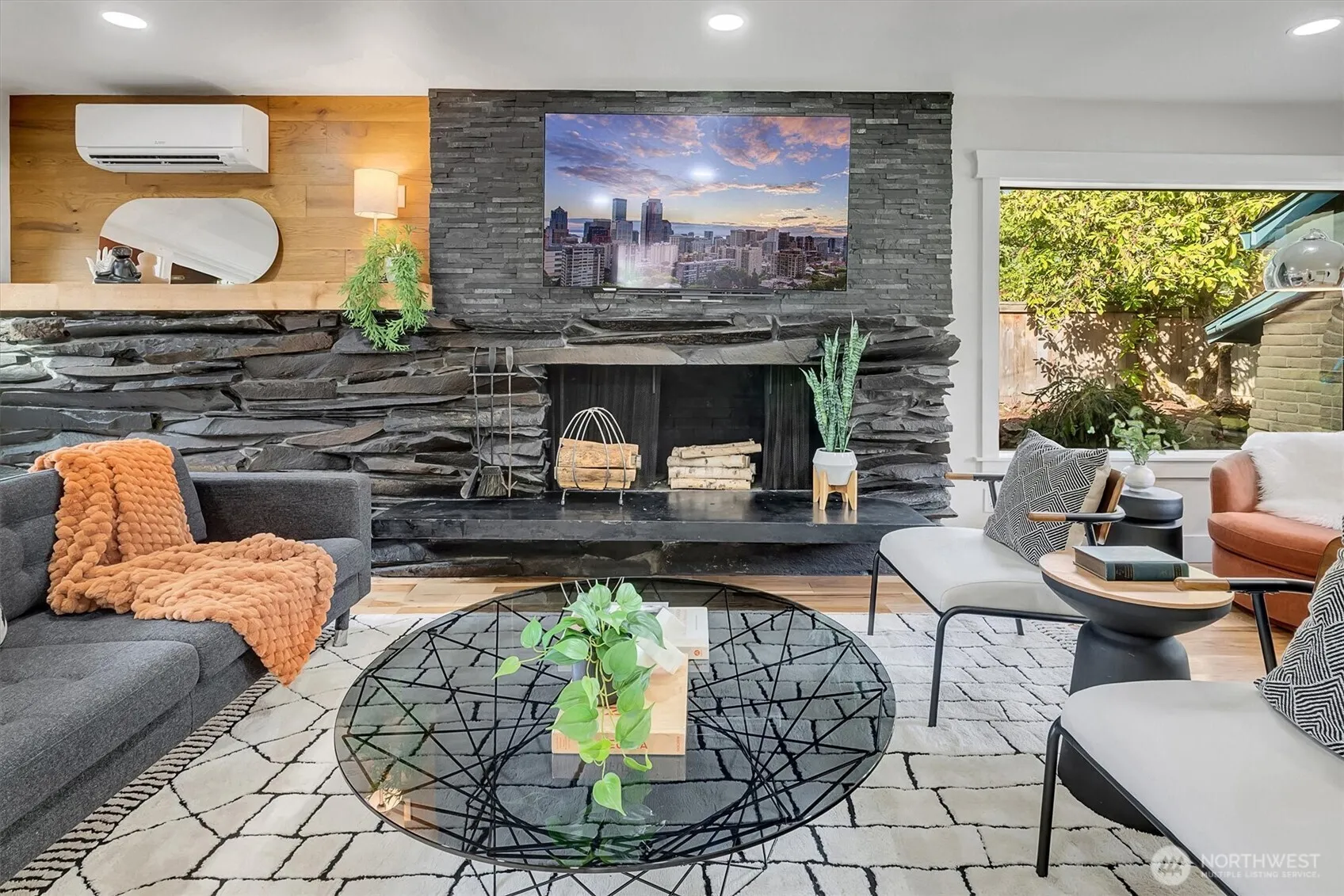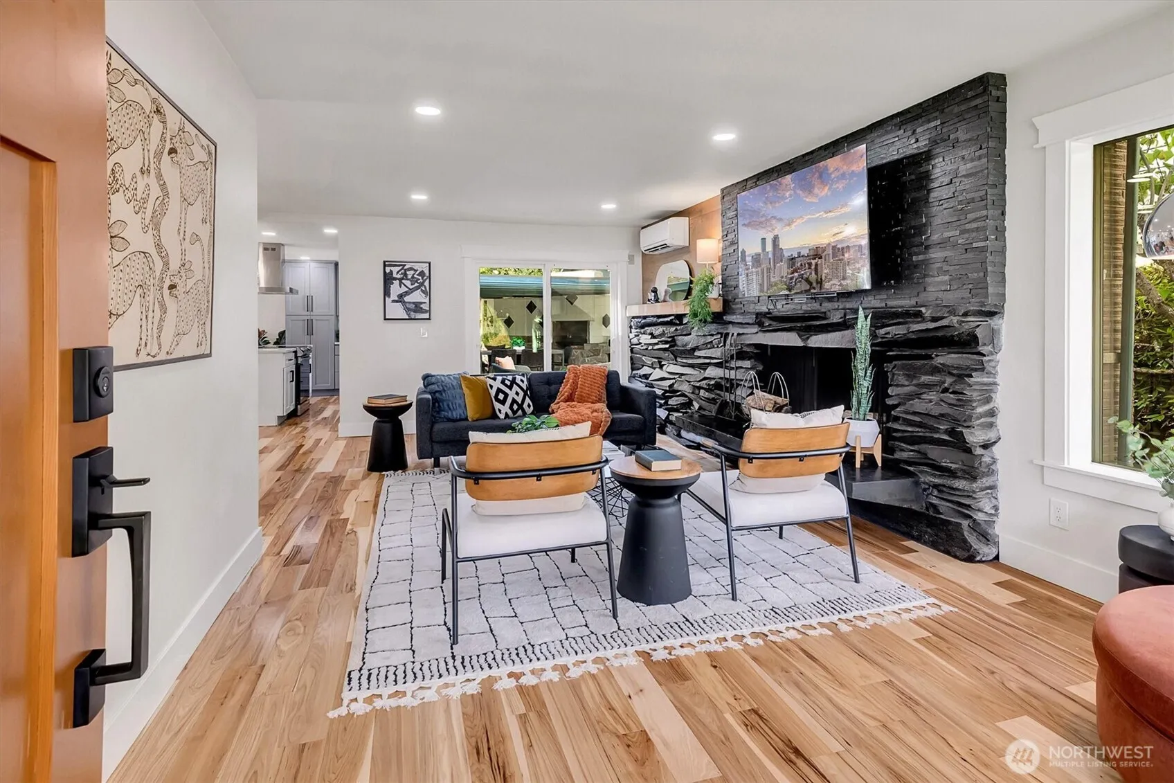 Tucked away in the heart of Briarcrest, this beautifully reimagined home effortlessly blends timeless mid-century charm with modern design. Iconic stone arches and a one-of-a-kind fireplace set the tone, while the chef’s kitchen—featuring quartz countertops and stainless-steel appliances—flows seamlessly into an open dining space perfect for gathering. Outside, lush landscaping surrounds a gated patio with a built-in stone grill and a fruit-filled backyard, creating your own private oasis. The primary suite offers a true retreat, complemented by thoughtful updates throughout, including new electrical, plumbing & A/C. Carport, extra storage outbuildings, and a prime location near Link Light Rail, Burke-Gilman Trail + parks.