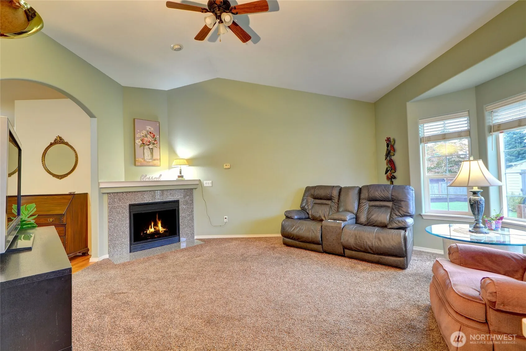 • Interior Features Bath Off Primary, Double Pane/Storm Window, Fireplace, Vaulted Ceiling(s), Dining Room, Water Heater, Ceiling Fan(s)