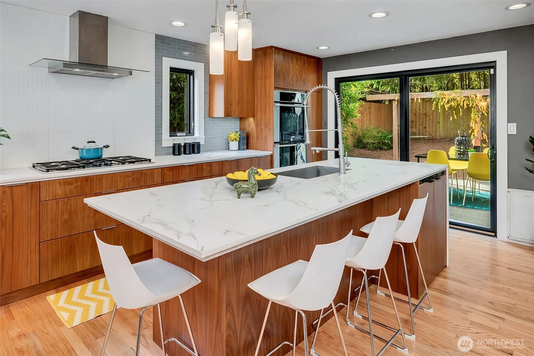 Mid-century design meets modern living in Shoreline’s Hillwood neighborhood. This stylish Ray Anderson-built one-level home features an open layout and a chef’s kitchen with high-end appliances, expansive stone counters, and custom Smith Vallee cabinetry—perfect for hosting friends or winding down after work. Enjoy the spa-inspired steam shower and smart upgrades like solar panels, a new roof, A/C with heat pump, tankless water heater, refinished oak hardwood floors, and energy-efficient windows. The landscaped yard—designed by a master gardener—offers a private patio, mature plantings, and a tucked-away vegetable garden. Near parks, shops, eats, top-rated schools, and transit/light rail close by—easy commuting without relying on a car.